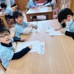 きりん組は点繋ぎや数字絵の具のプリントを集中してすることが出来ました✨来年度から入る新しい先生がお部屋に来てくれたのでお互い自己紹介をして最後にじゃんけん列車🚃をし、じゃんけん✊✌️✋の勝敗で前後になり長い列ができ、つながる楽しさを感じていましたよ🥰