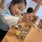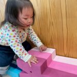 まずは自由に積み上げたり並べたり♪その後は高く積み上げるゲームに挑戦!順番を守り、そーっとゆっくり乗せることを意識しながら行いました😊途中で斜めになって倒れてしまいましたが、今度はその数を使ってかるた遊び!数回目ということもあり、ルールを理解している子が多く、前のめりになりながら楽しんでいました😆