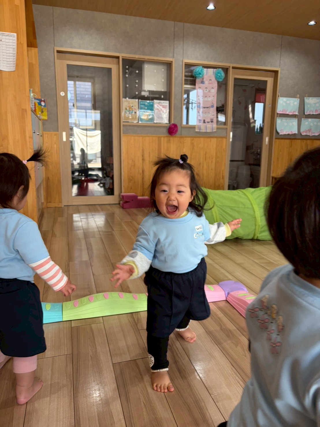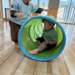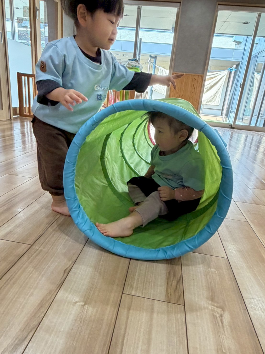 その後はお部屋でサーキット遊びをしましたよ😄トンネルや平均台、ワニ型のボブルスで身体を動かして楽しみ、トンネルをくぐるお友だちを追いかけてみたいり、ボブルスに一緒に座ったり、お友だちと関わりながら遊ぶ姿が見られ、とっても可愛くて微笑ましかったです🥰りす