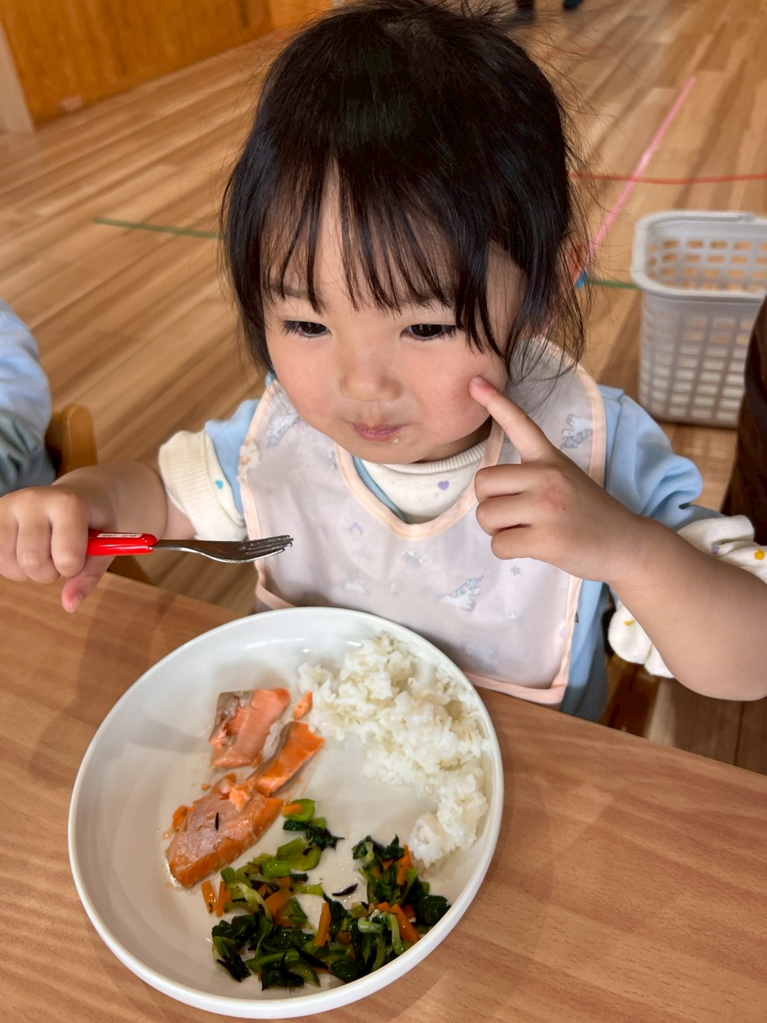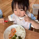 いっぱい動いた後は、給食ももりもり食べるりす組さんでした😆ぱんだ🐼🐾
