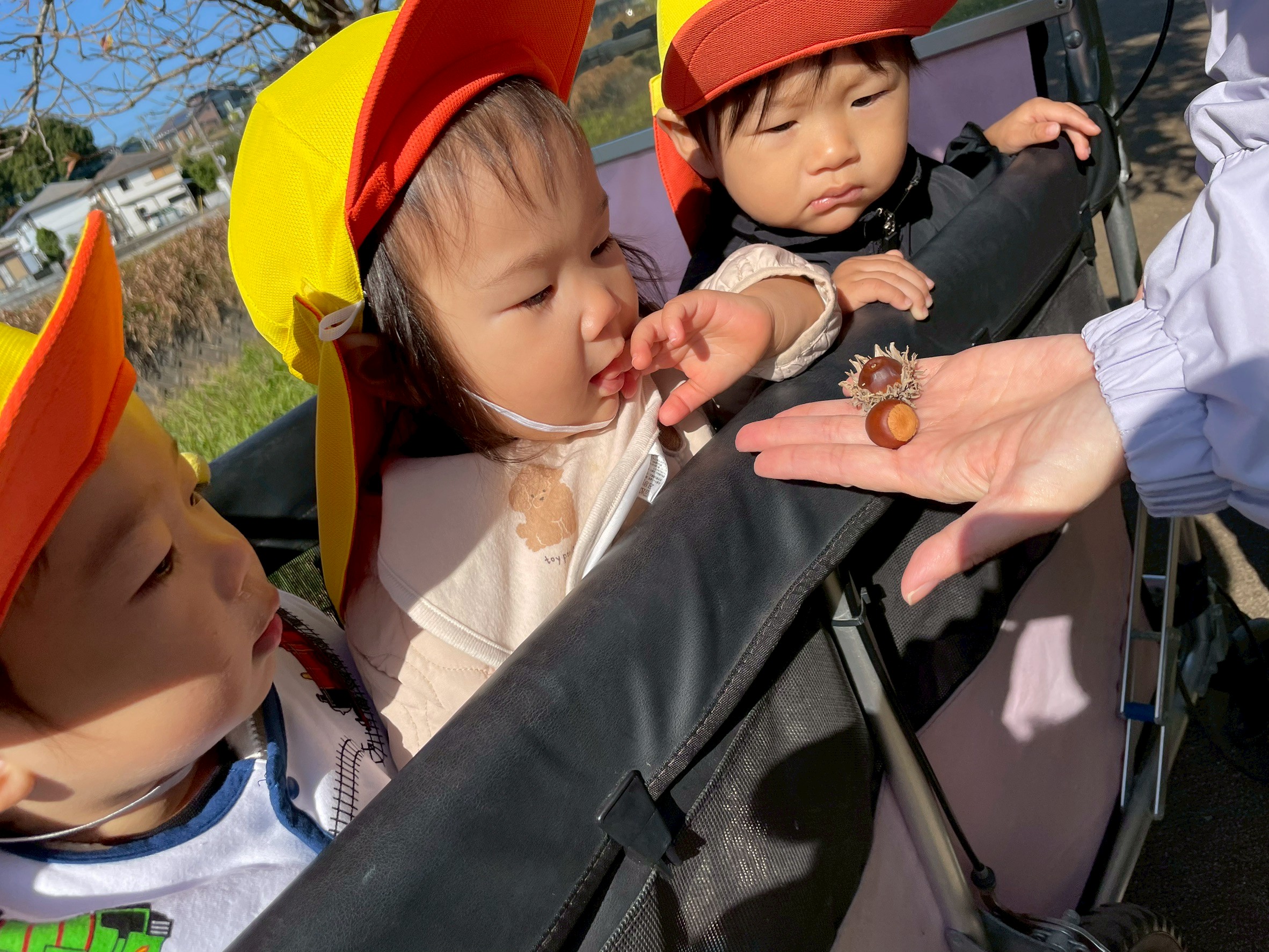 11月17日 2025.11.18 / 未分類 ひよこ組🐥 今日はりす組🐿️さんと一緒にくりえいとふれあい公園まで遊びに行きました😃 カートに乗って、車🚙や飛んでいる鳥🕊️に手を振り景色を楽しみながら行きましたよ😄 公園ではどんぐりや落ち葉がたくさん落ちていて、拾った…続きを読む