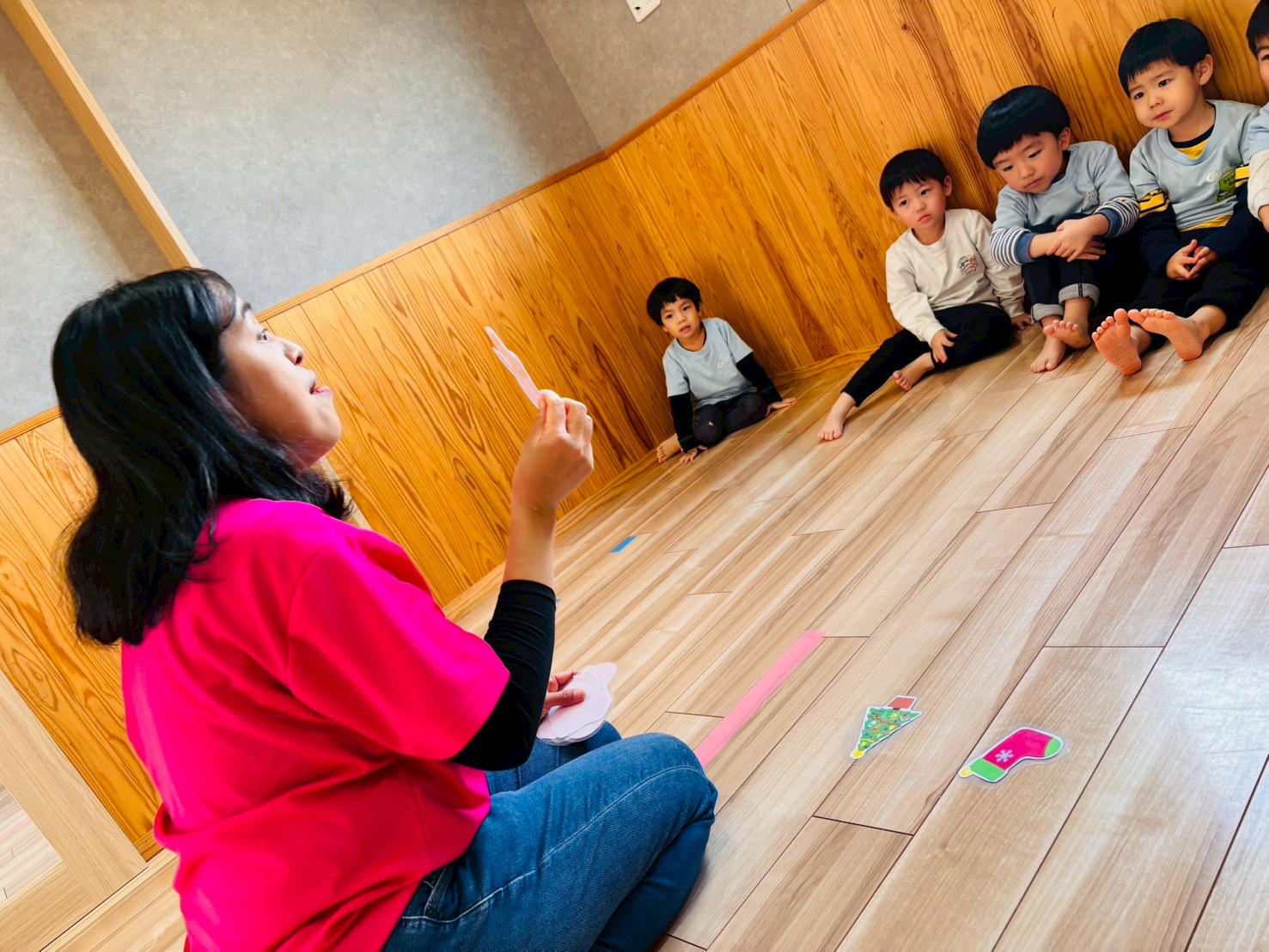 12月18日 2025.12.19 / 未分類 ひよこ組🐥 今日はクレヨンを使って画用紙にお絵描きをしました🖍️ 久しぶりのクレヨンに早く持ちたい!と手を伸ばしていました😄でもその前に「どんな色が好き」の歌を歌いながら「あか」や「あお」のクレヨンを見て色の名前を聞きま…続きを読む