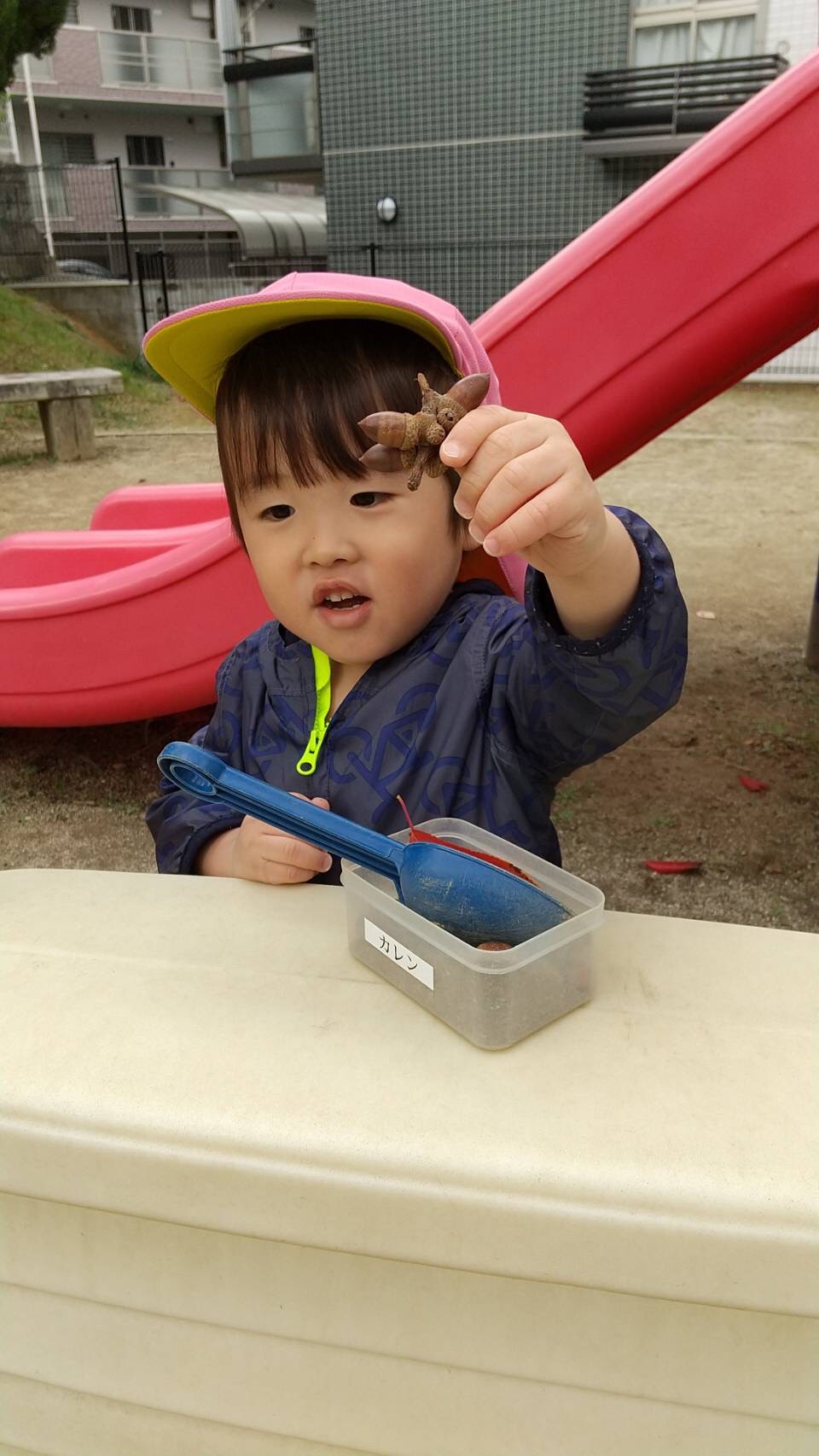 今日は大きなお友だちは、以前拾ったどんぐりを持って、公園に出かけました。