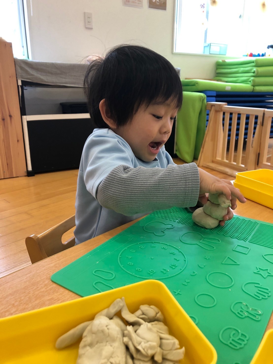 今日は雨模様☔のお天気だったので、ぱんだ組さんはお部屋で粘土遊び、小さいお友だちは積み木遊びをしました😊
