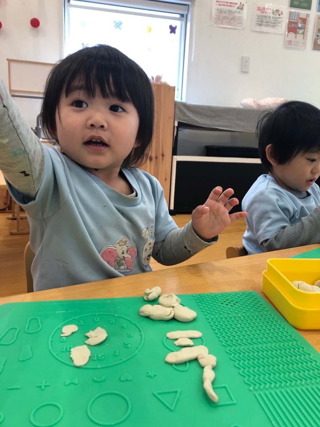 粘土遊びでは、美味しいパンを作ってみせてくれたり、お団子を作って食べさせてくれる、かわいいぱんだ組さんでした🐼💕