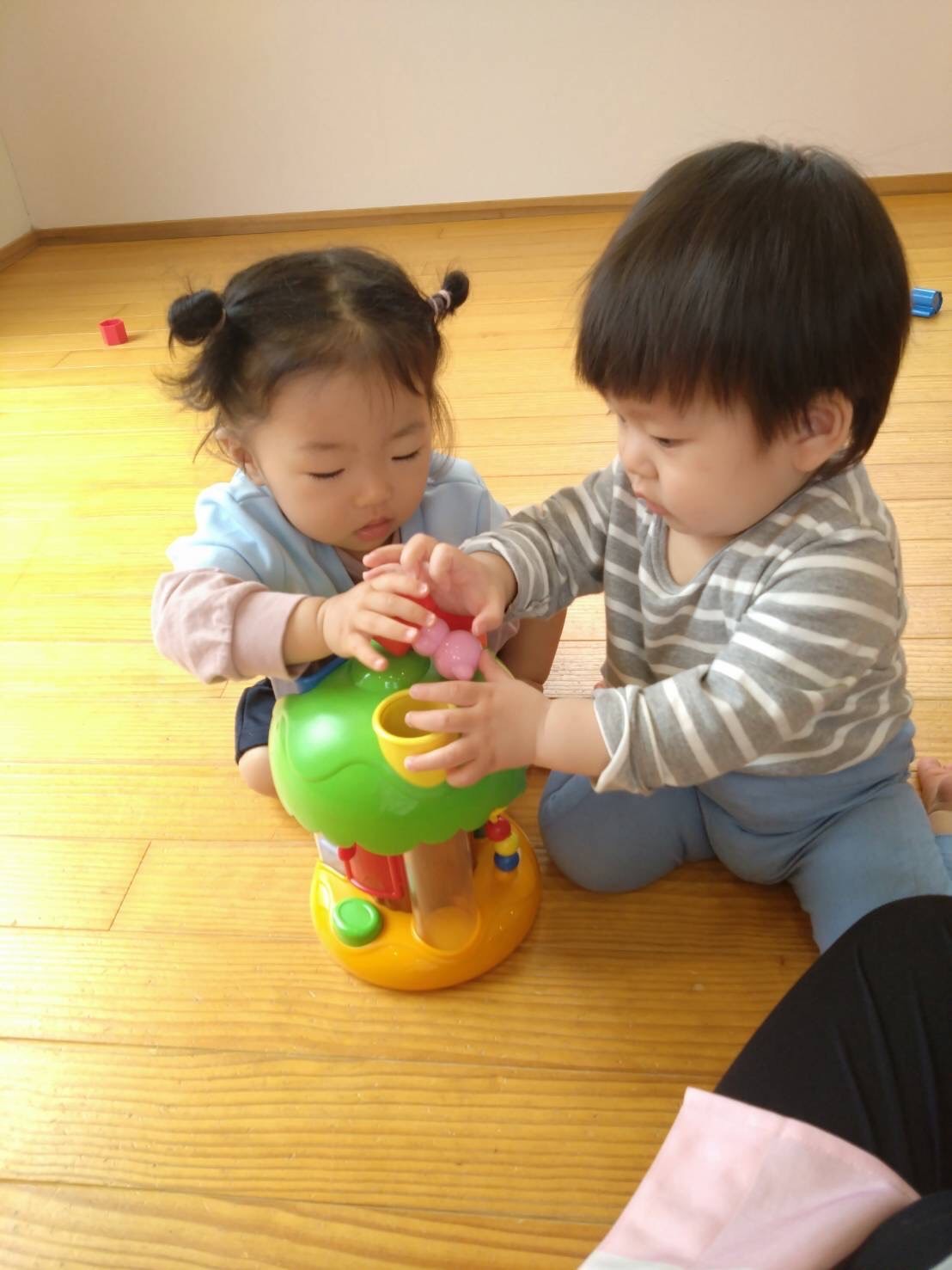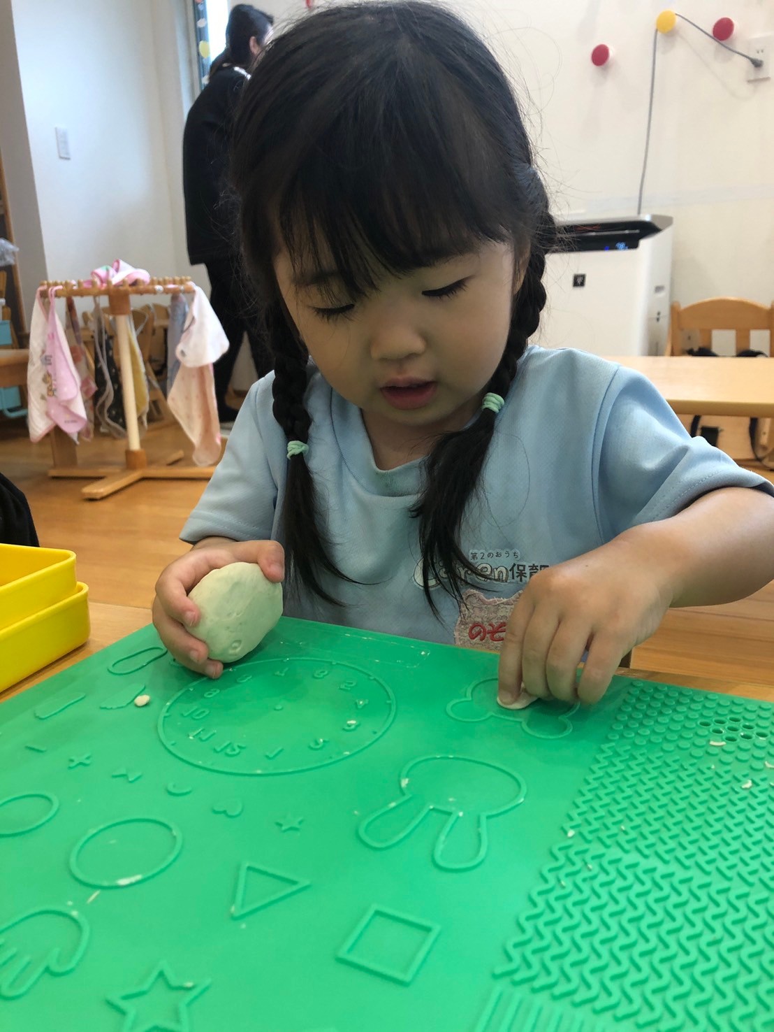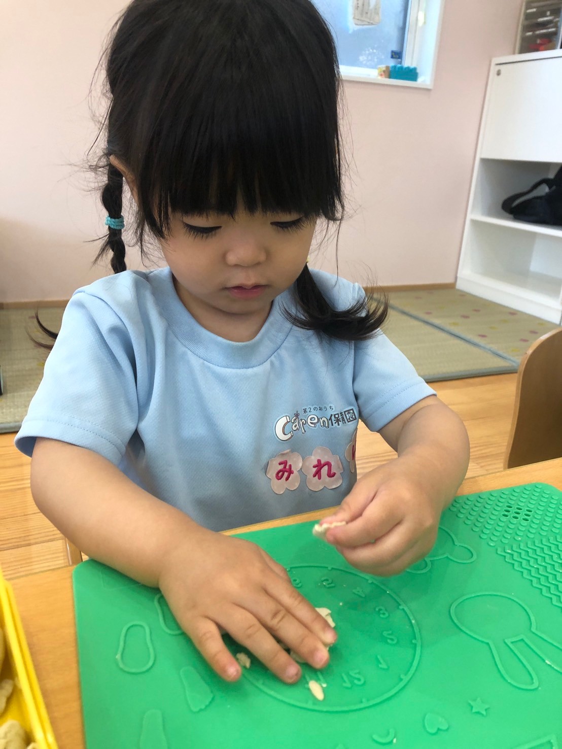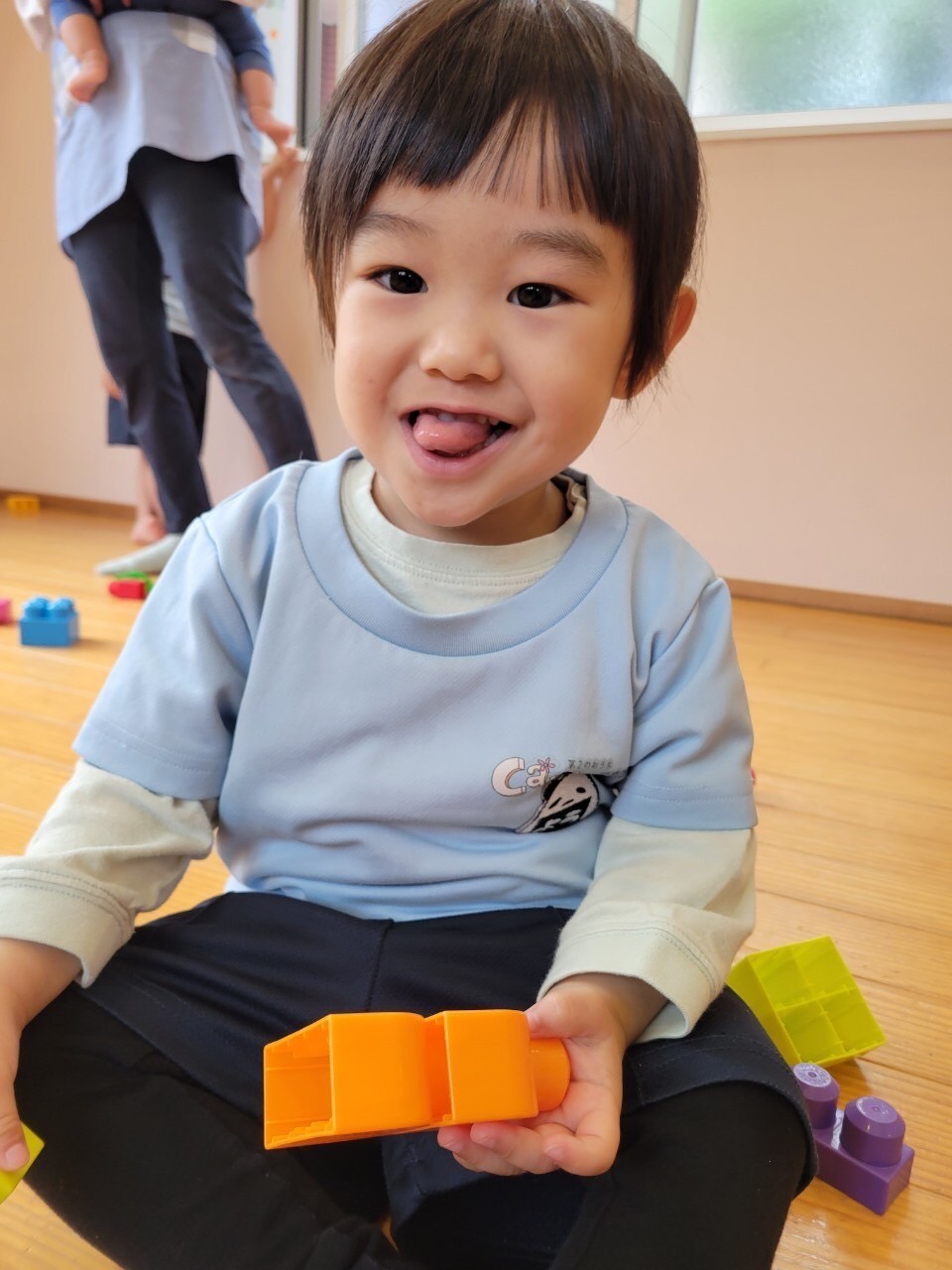 今日は、朝の会の後、室内遊びをしましたよ😉みんなでブロック遊びをしたり、パンダ組さんは、粘土遊びもしましたよ✌️粘土遊びの時には、ハート❤️できた😍や、へびだよ😆と色んな作ったものを見せてくれました😊