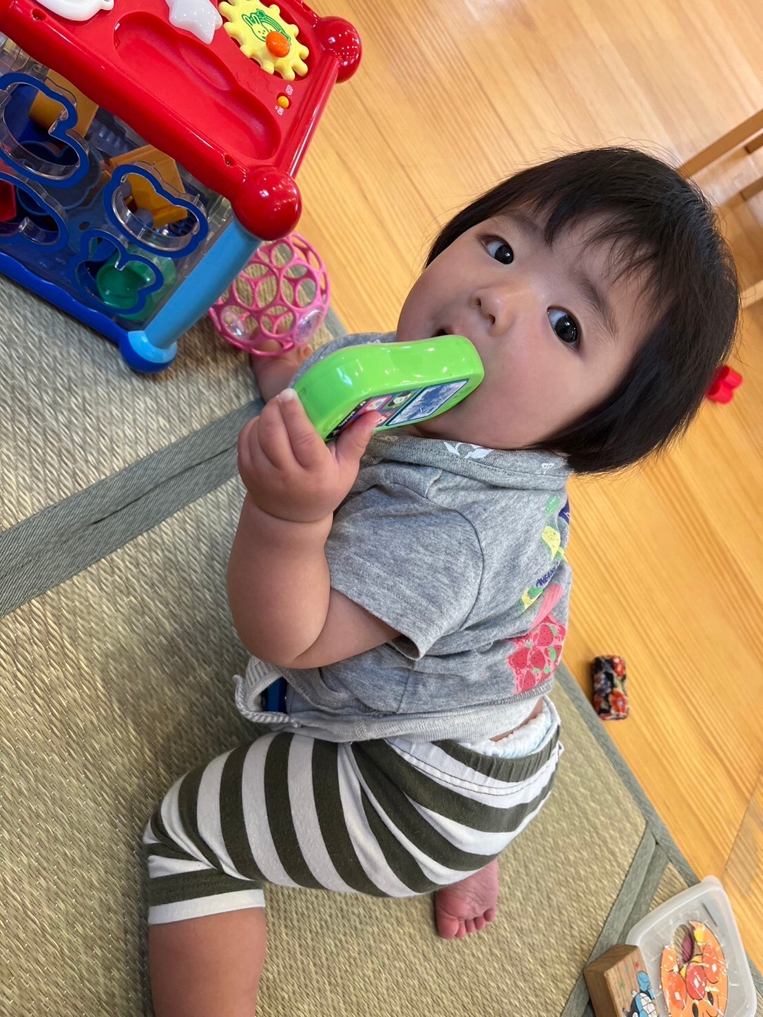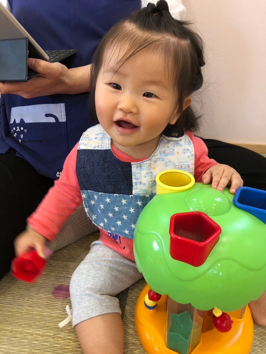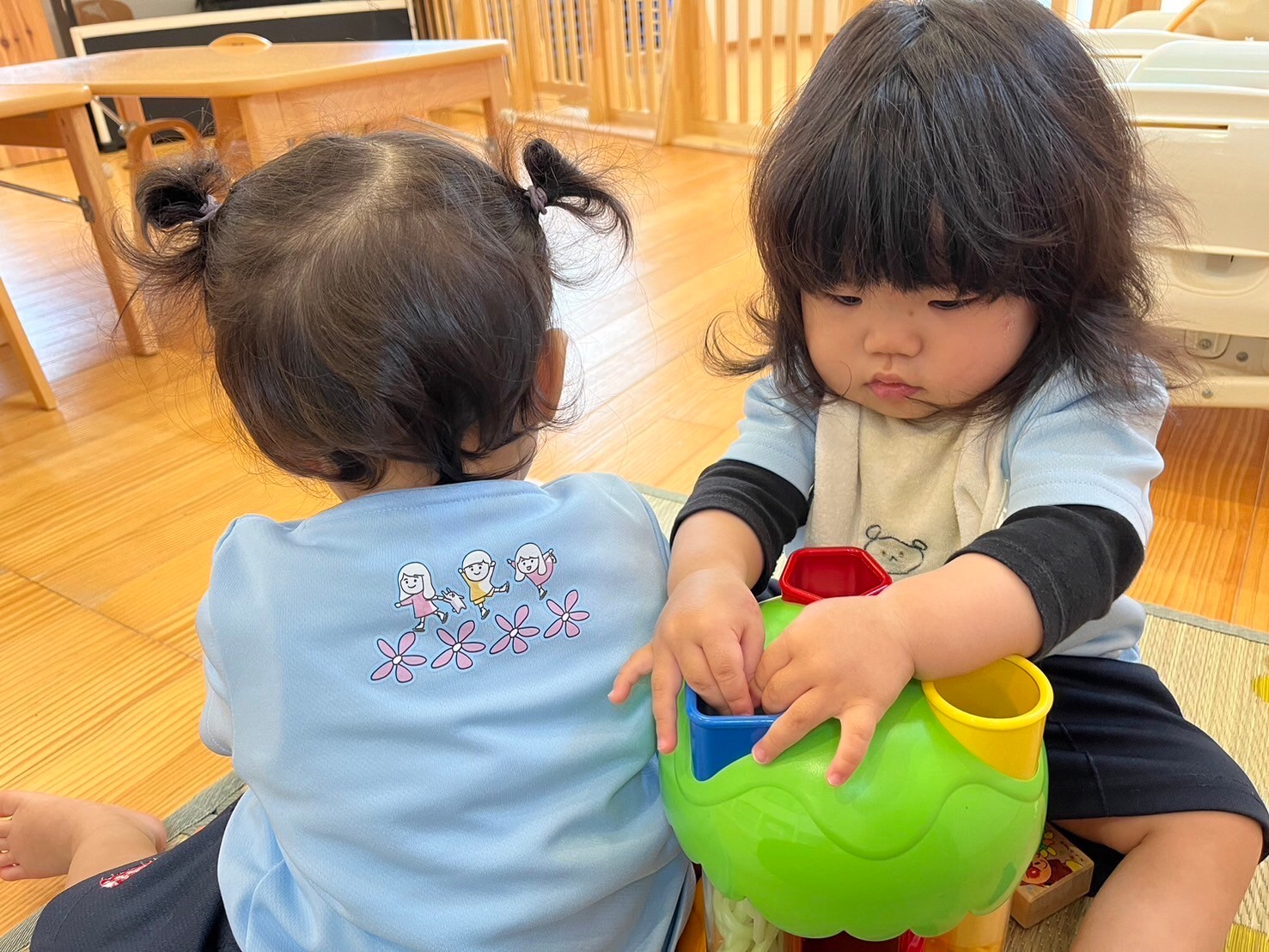 色々な入れ物に玩具の出し入れをしたり、玩具を振って音を確かめたりと、穏やかに遊ぶ姿が見られました😊✨
