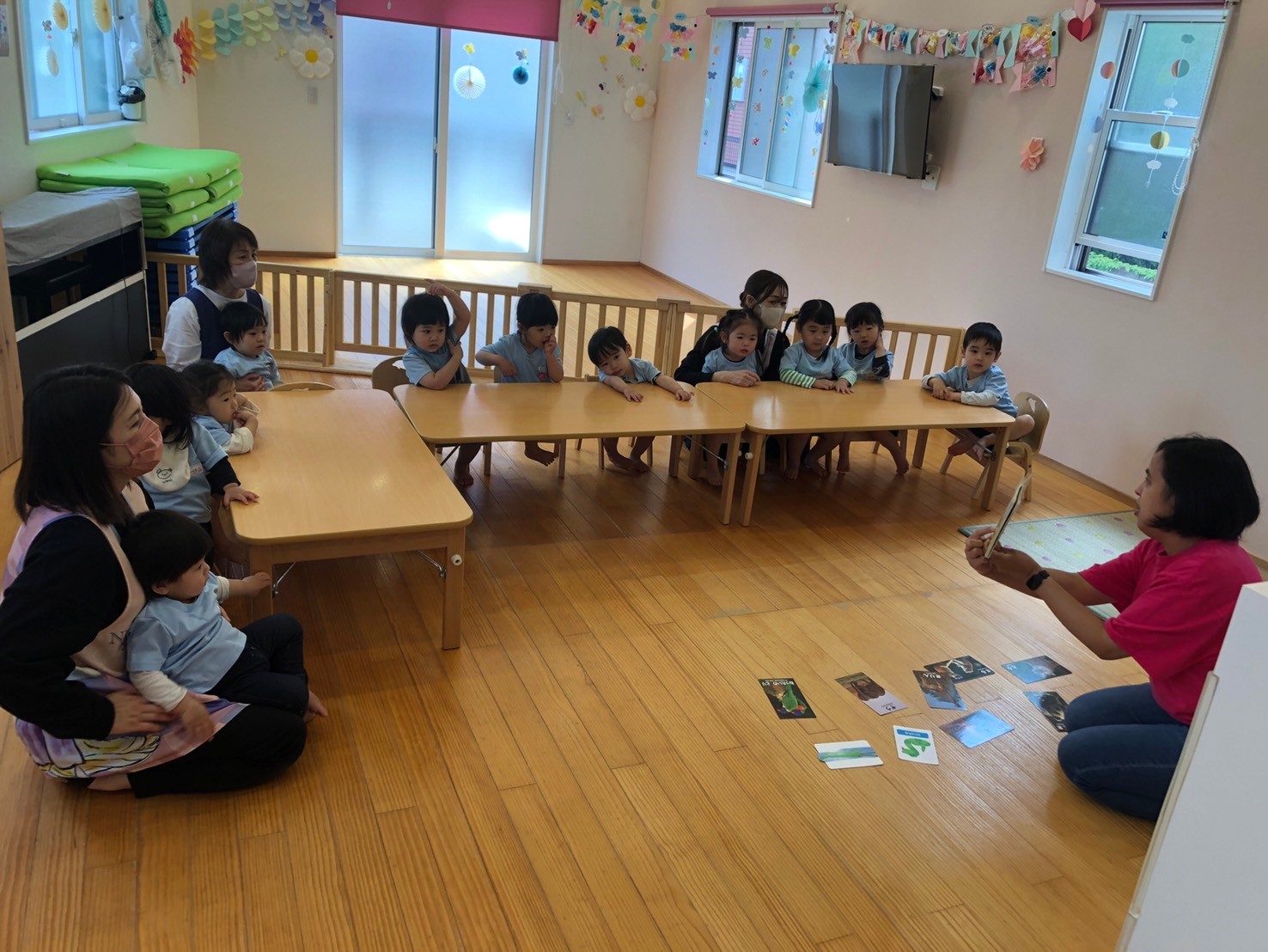 次々に登場する動物を見て「elephant!🐘」「giraffe!🦒」と大きな声で発音しながら見ていた子ども達です😊レッスンのあとは、公園に出かけました。