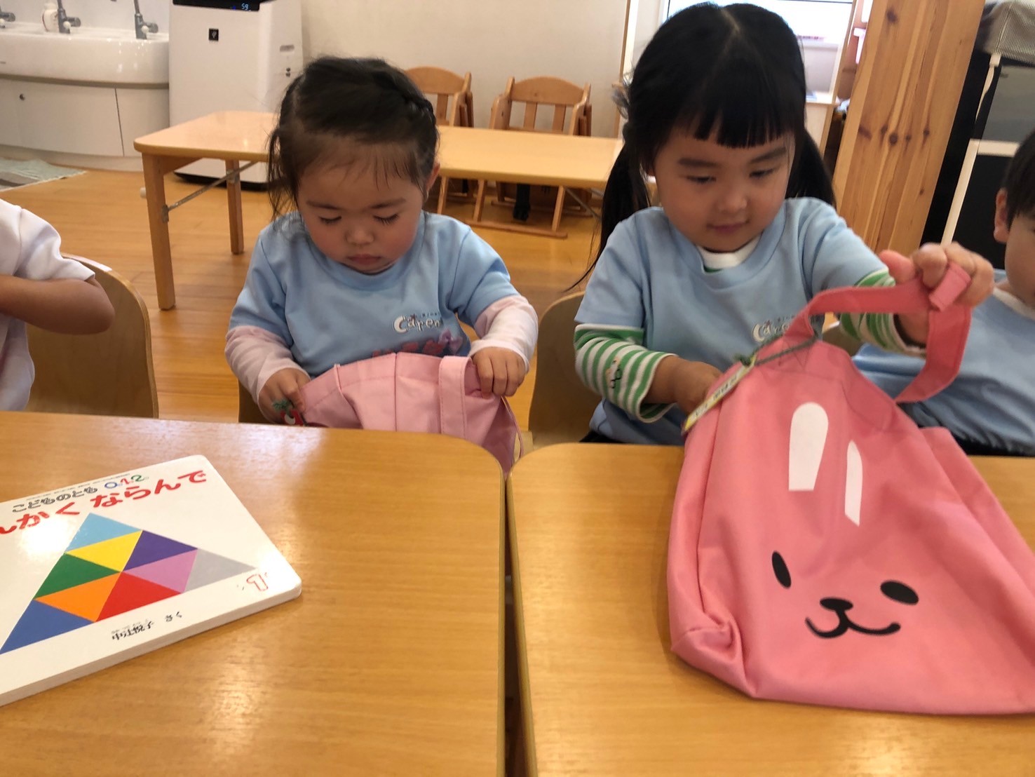 おうちの方と一緒に絵本を楽しんで、今日は朝の会のあとにお片付けをしました。
