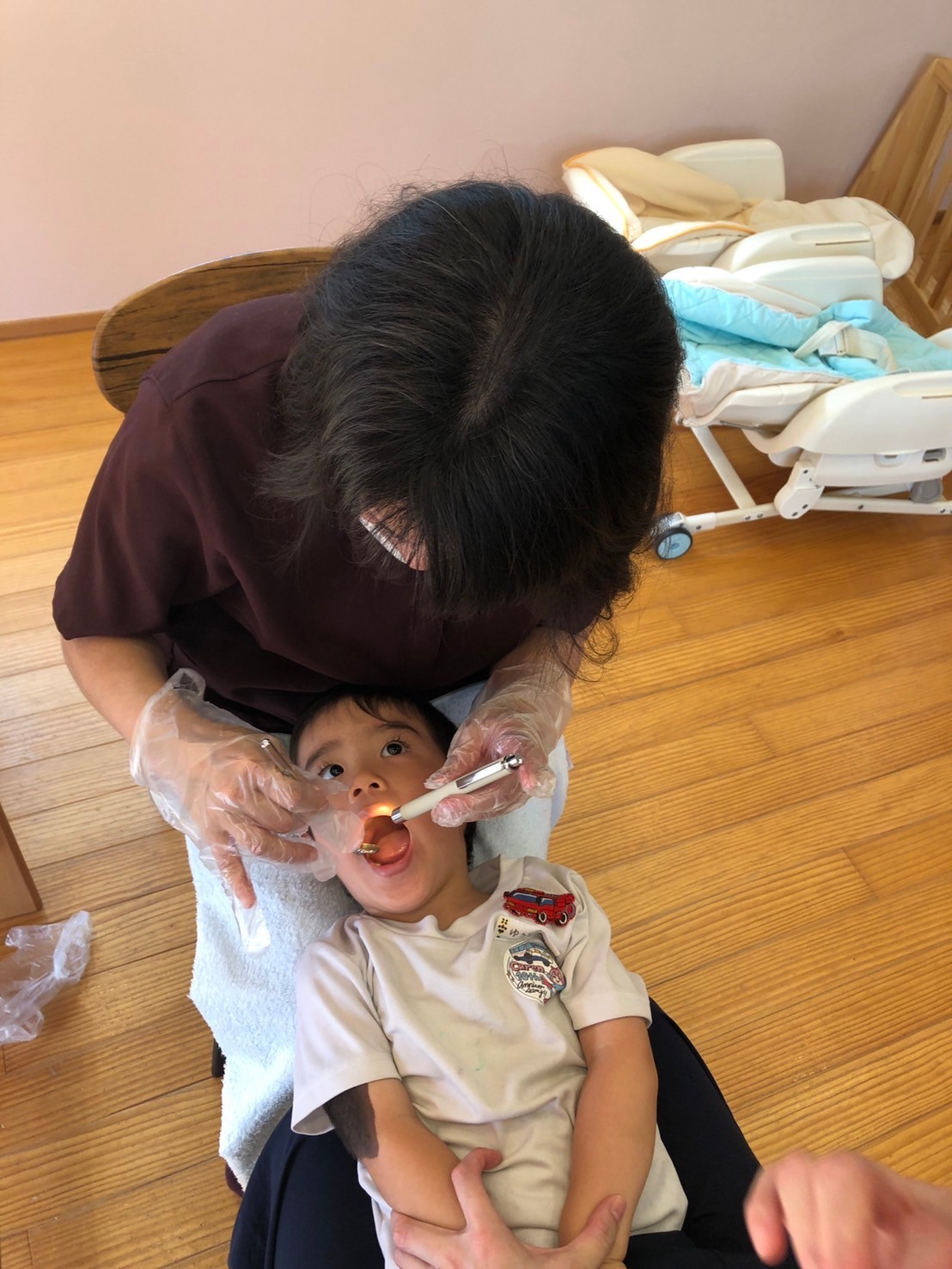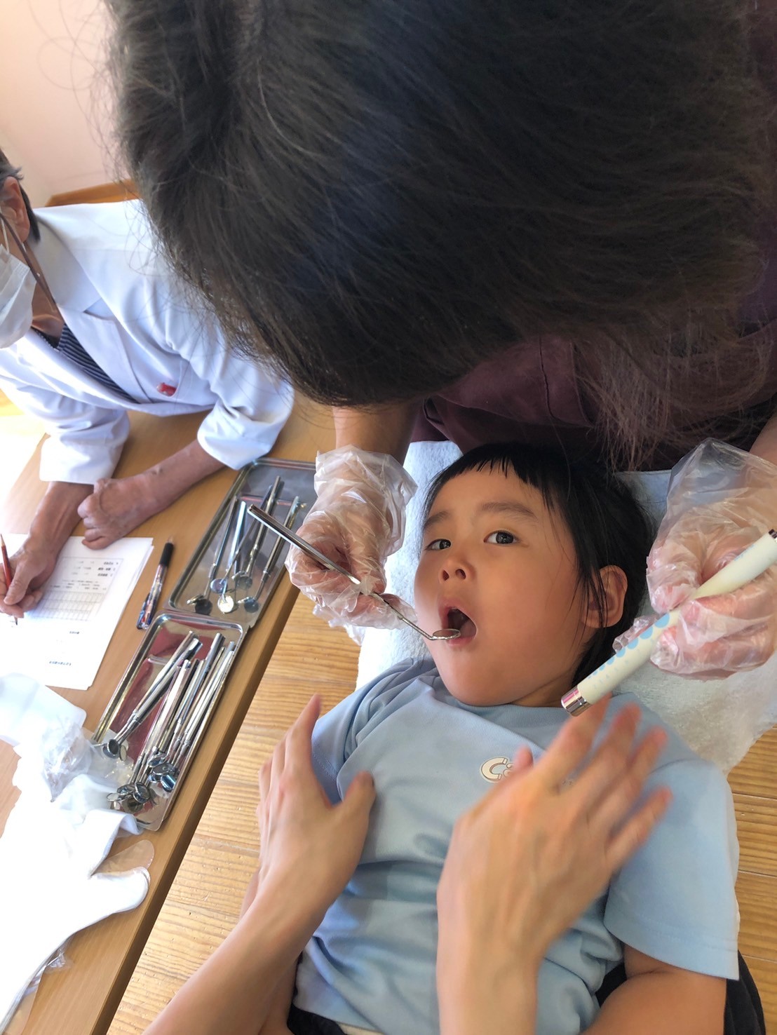 名前を呼ばれて順番に受診しました。ドキドキしながら先生の前で口を大きく開けると「上手だね」と誉められて安心した様子でした😌💕少し泣いているお友だちもいましたが、すぐ泣き止むことが出来ました👏