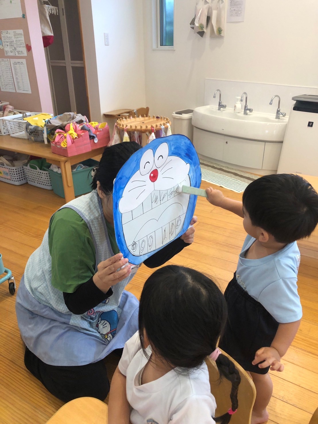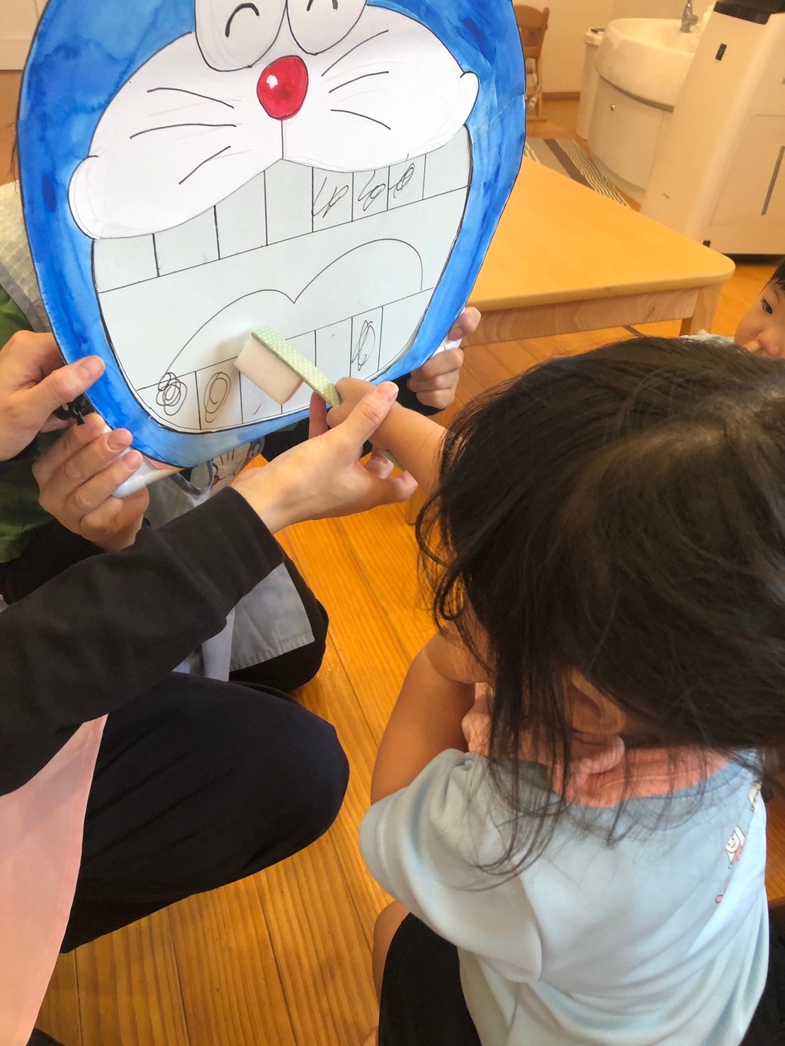 今日は、朝の会の後、看護師の先生に歯磨き🪥のお話しをしてもらいましたよ😊