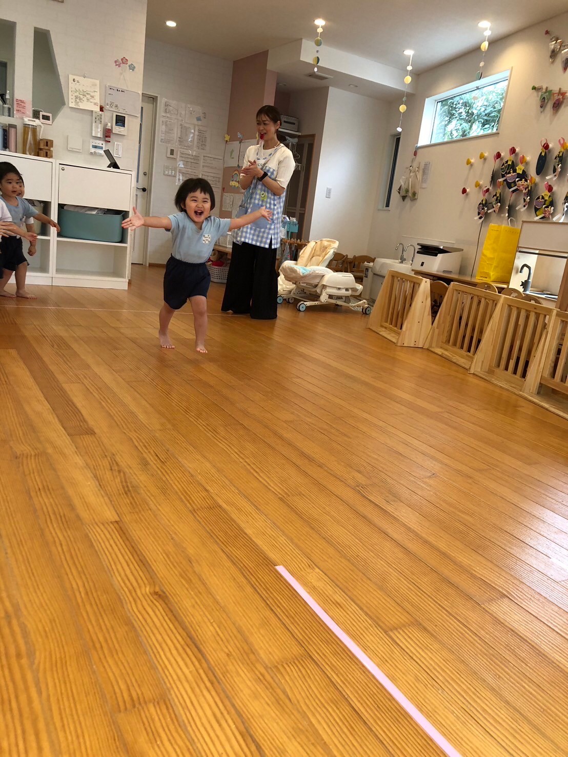 ひよこ組さんりす組さんは保育者と一緒にゴール。ぱんだ組さんは一人ずつ名前を呼ばれて元気よく返事して勢いよくかけっこをすることが出来ました⭐️