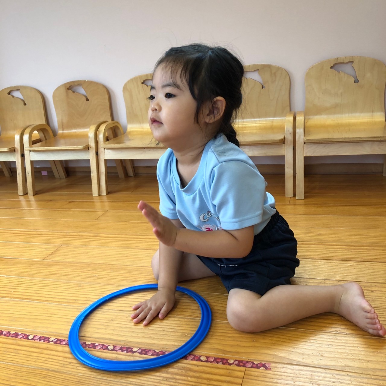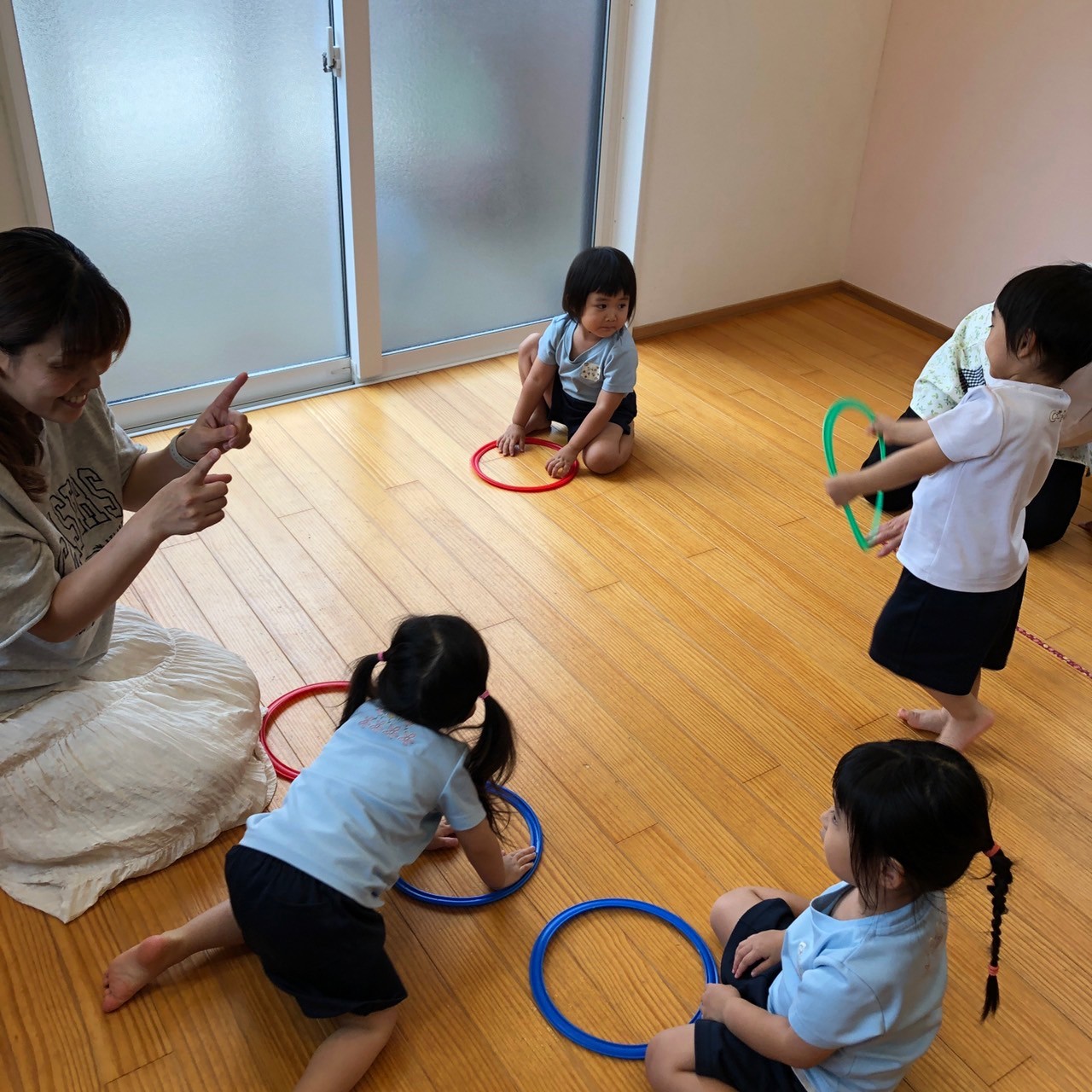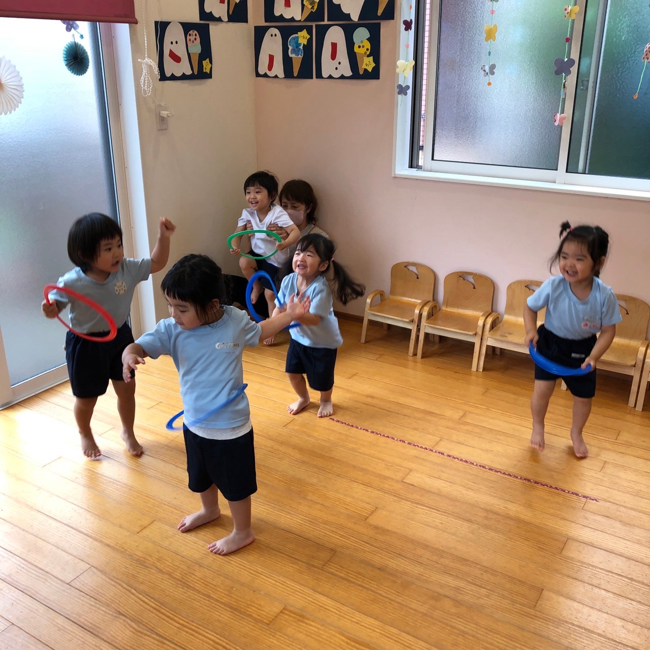 最後はミニフープを持って「バスに乗って」をしました🚌運転手の姿がとーってもかわいい子どもたちでした😍