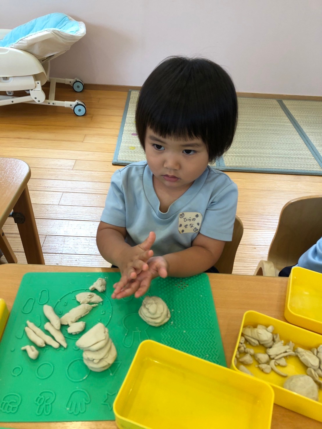 その後は、ぱんだ組さんは大好きな粘土遊びをしましたよ😍ハンバーガー、ポテト、ジュースを作って、ハンバーガーセットをご馳走様してくれました🍔