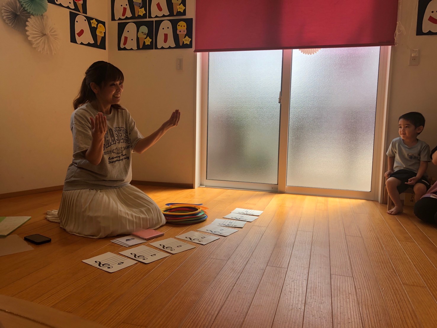 紙芝居を見たり、音符のフラッシュカードをしたり、リズムあそびをして、盛りだくさんのリトミックの日でしたよ✨