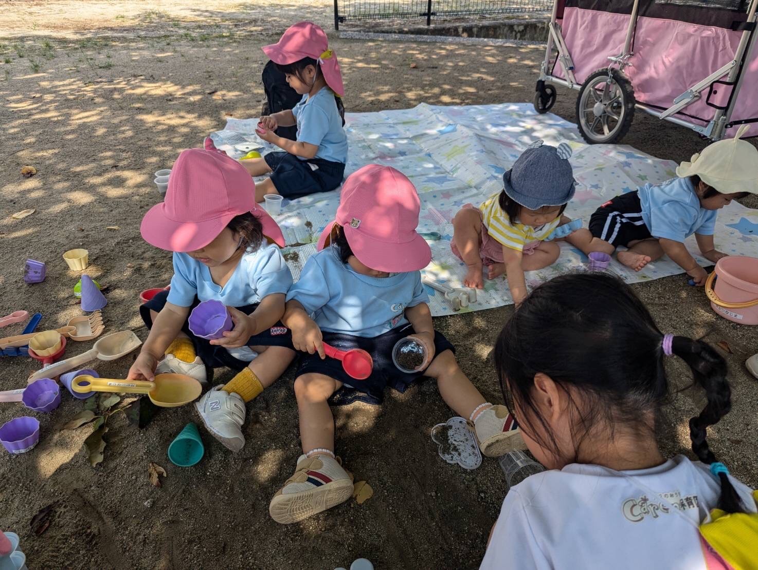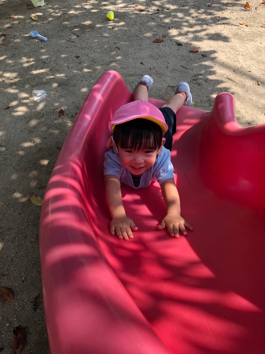 公園では滑り台を滑ったり、日陰で砂遊びや虫探しをして元気いっぱいに遊びましたよ🤗