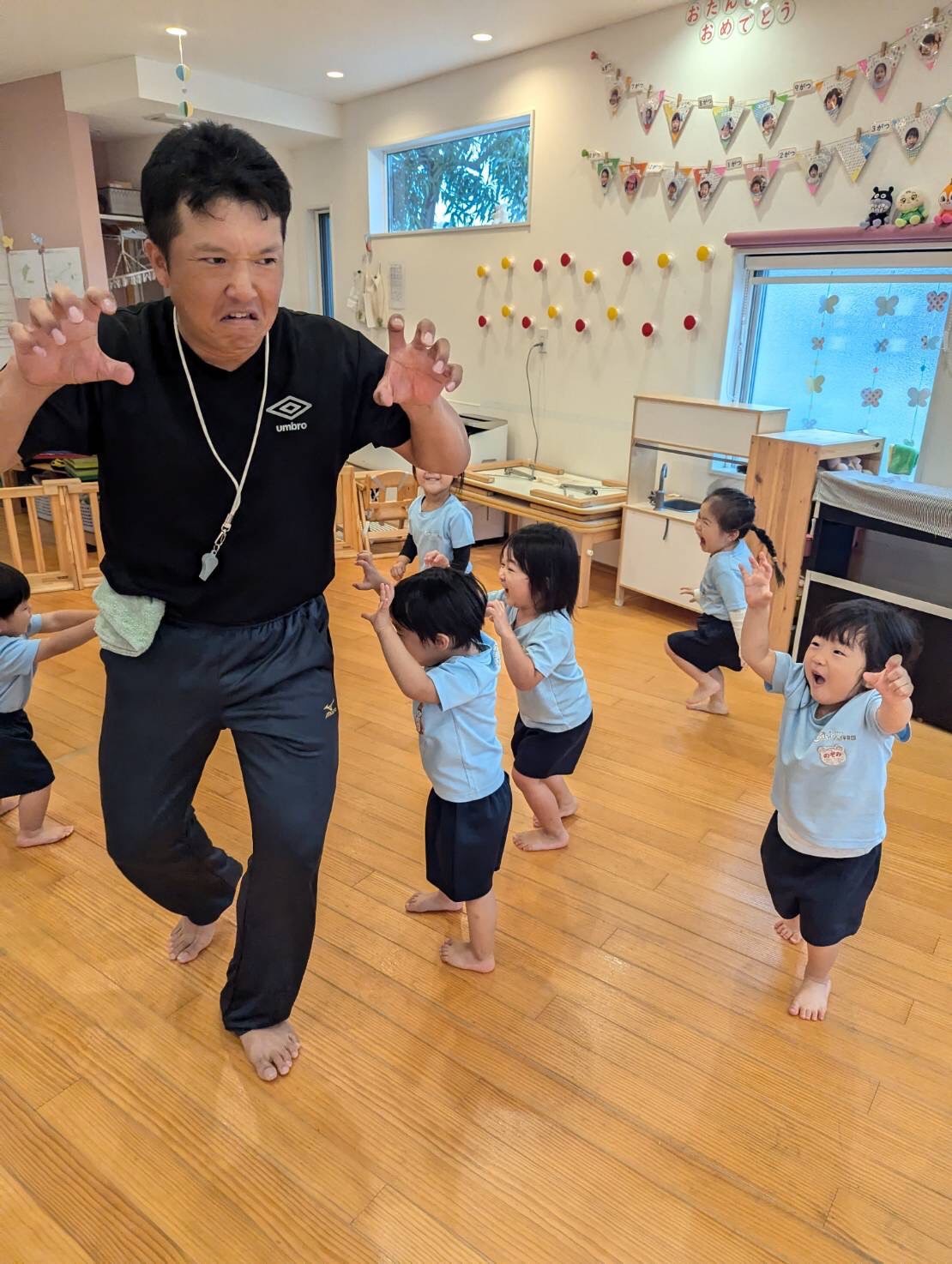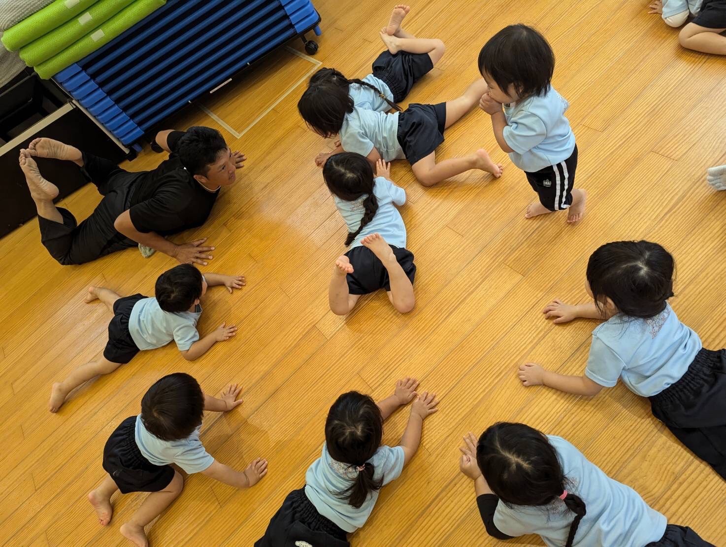 上手に出来ると、手と足で同時に拍手をするのが面白くて、笑いが止まらない子どもたちでした😆
