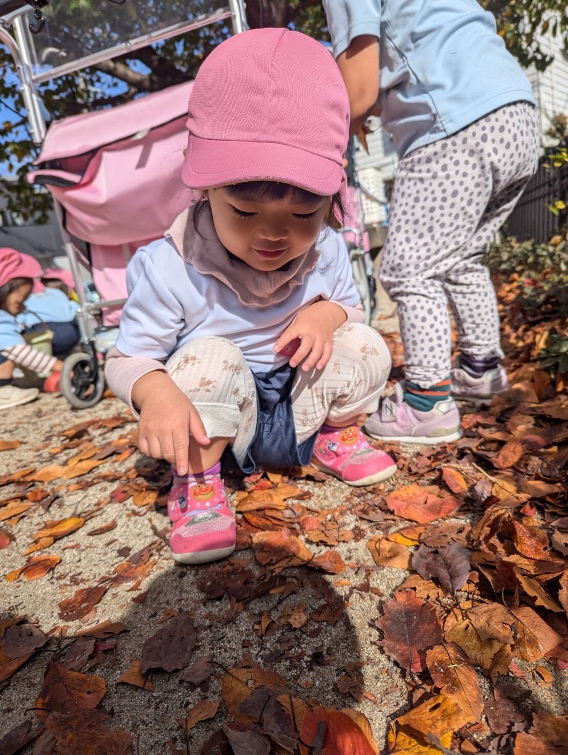 色付いた葉っぱを集めてままごとをしたり、滑り台を滑ったりして好きな遊びを存分に楽しみましたよ♡朝晩冷え込んできましたが、体調管理に気をつけて来週も元気に過ごしましょうね✨