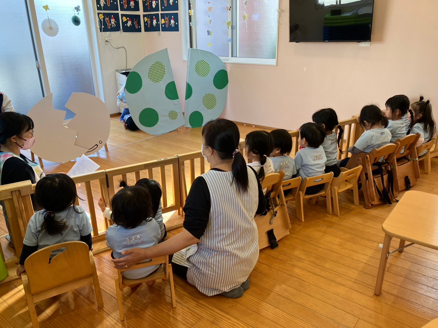ひよこさんたちも、先生のお膝にすわって、にこにこでした😊✨