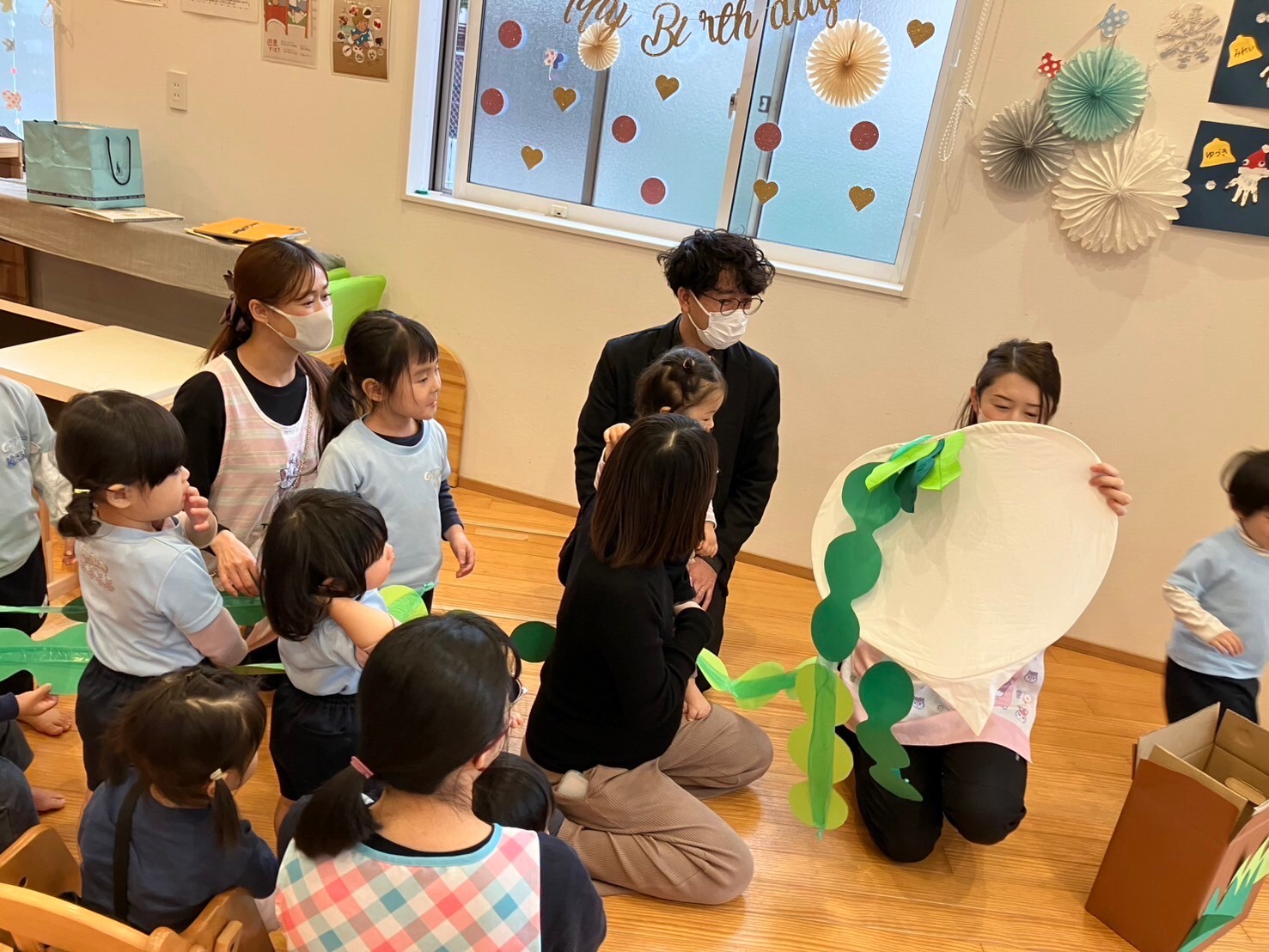 ケーキのロウソクも上手に吹き消すことが出来て、満面の笑みを見せてくれましたよ🎂保育者からの出し物は「おおきなかぶ」