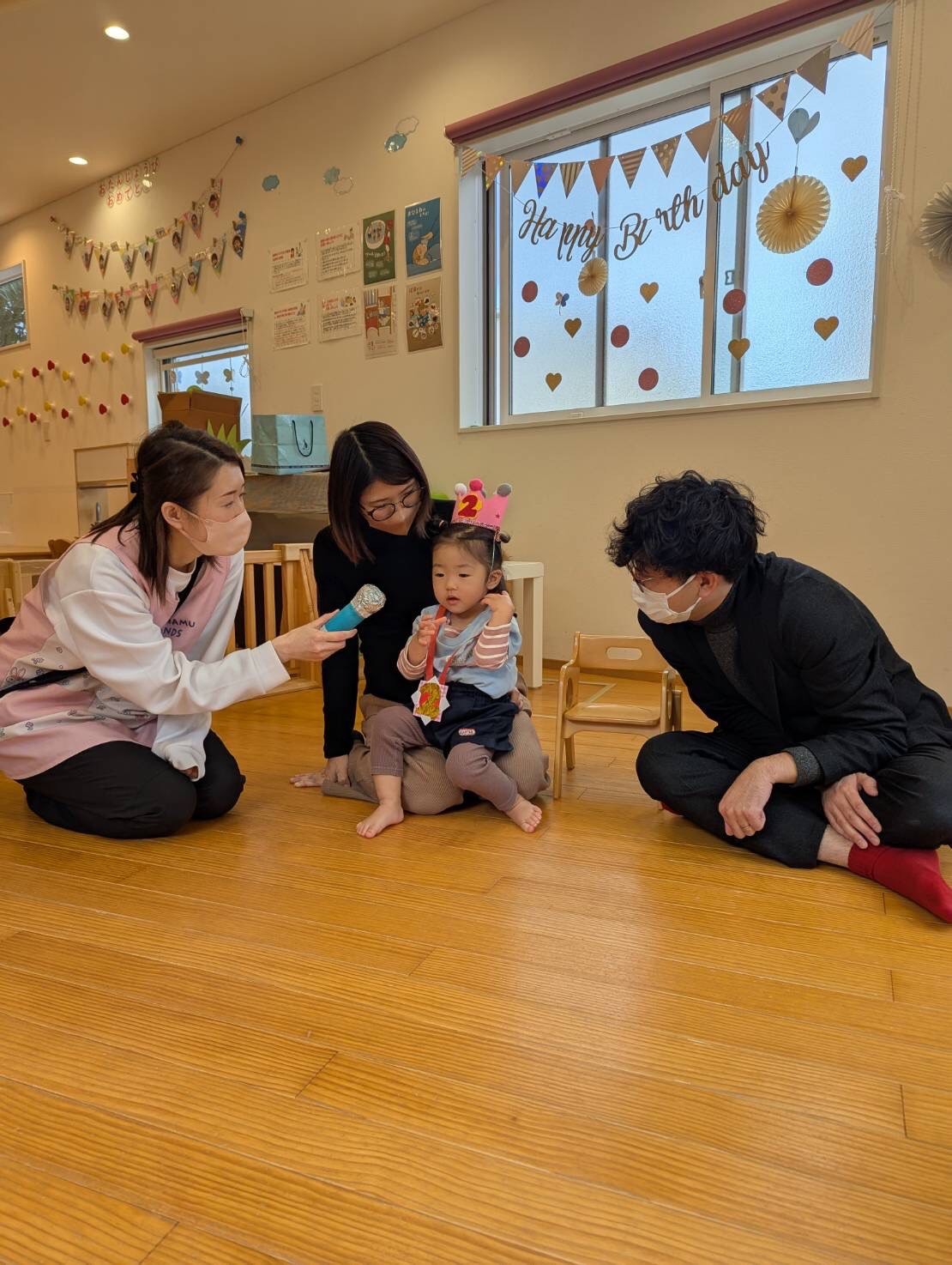 誕生会では主役のお友だちやパパとママにインタビューをしました。