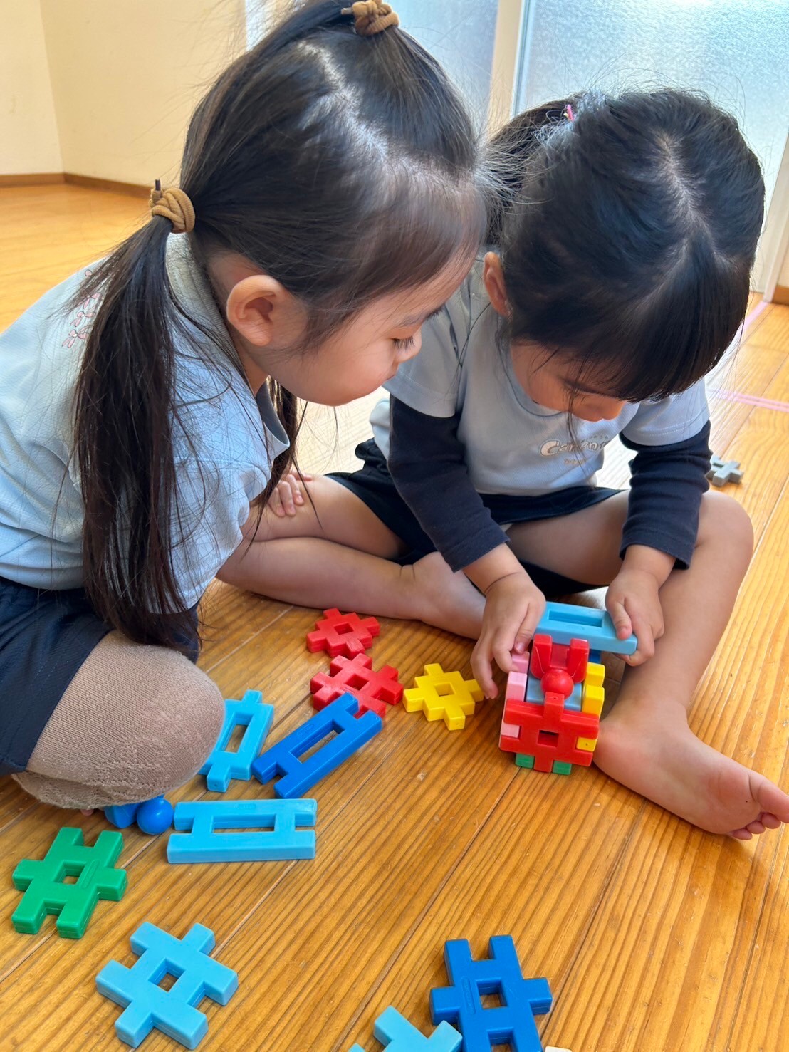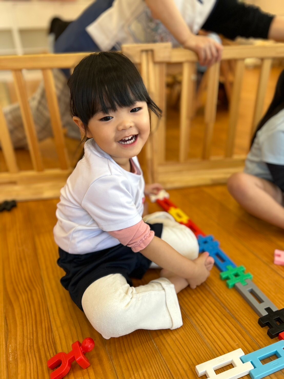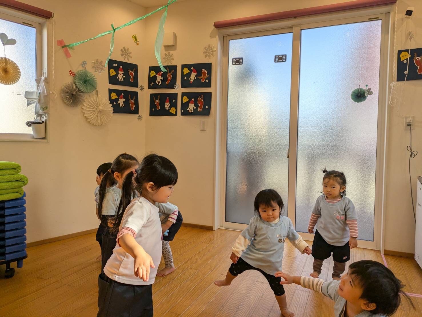 ひゃ✨💕とびっくりして笑ってるお友だちもいました✨ブロック遊びやケチャマヨ体操、冬のカラダゴシゴシあたたまり体操をしたあとは、