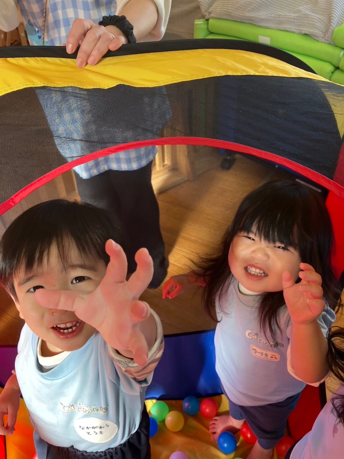 テントの中でボールを投げ合ったり、トンネルを順番でくぐって、仲良く遊びましたよ🤗