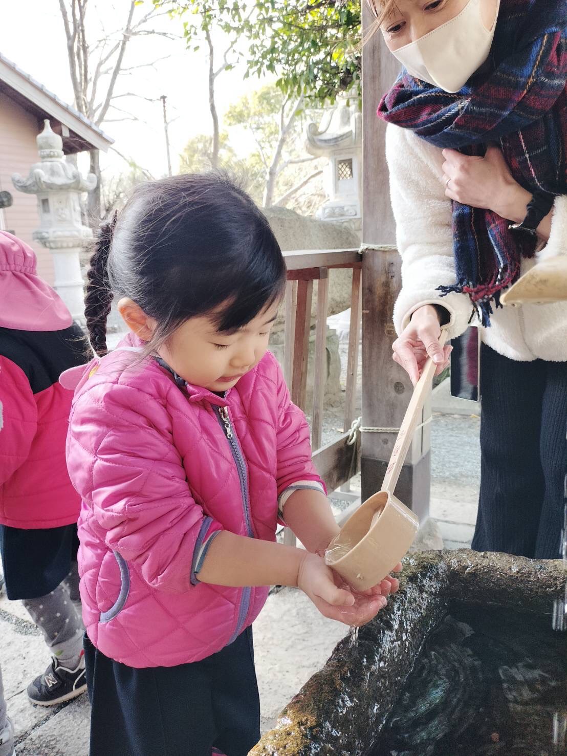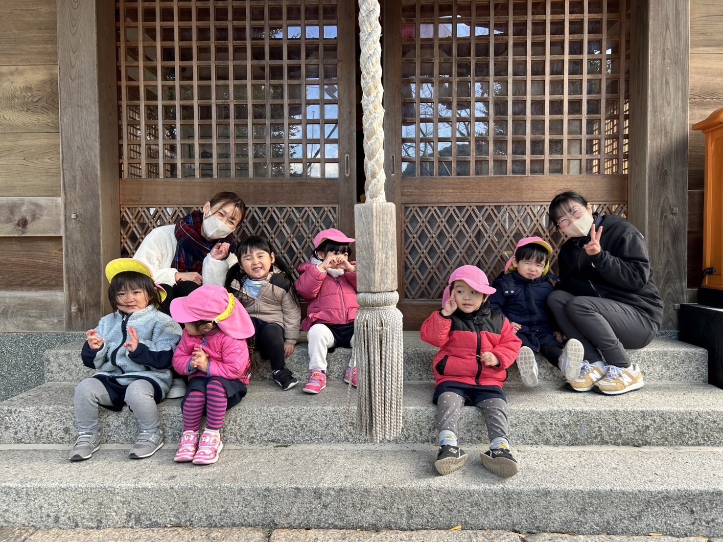 今日はぱんだ組さんとりす組さんは名島神社に初詣に行きました⛩