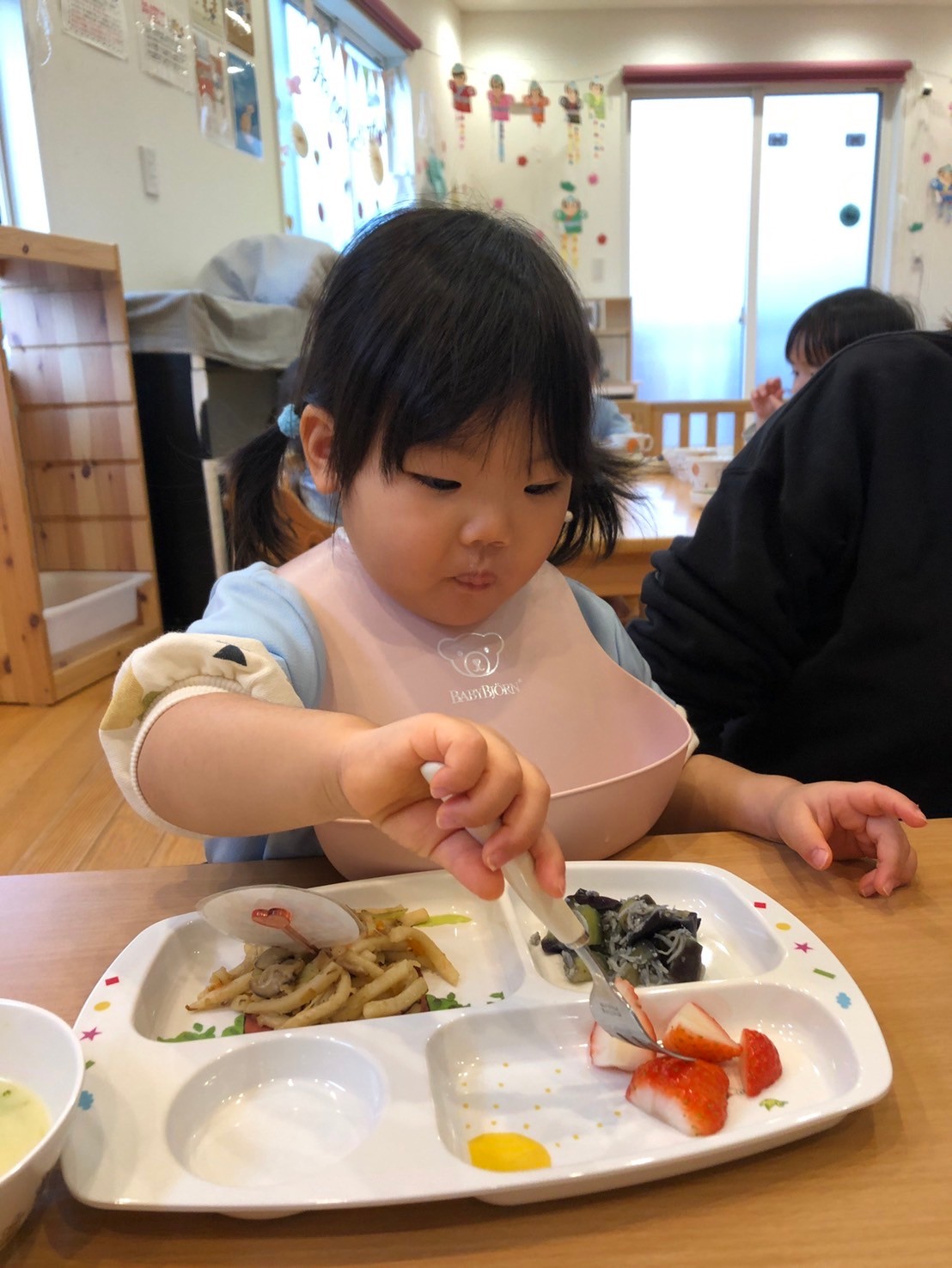 給食にはいちごが出てきて、美味しそうに食べていた子どもたちでした🍓【名島園の今日の給食です🍴】