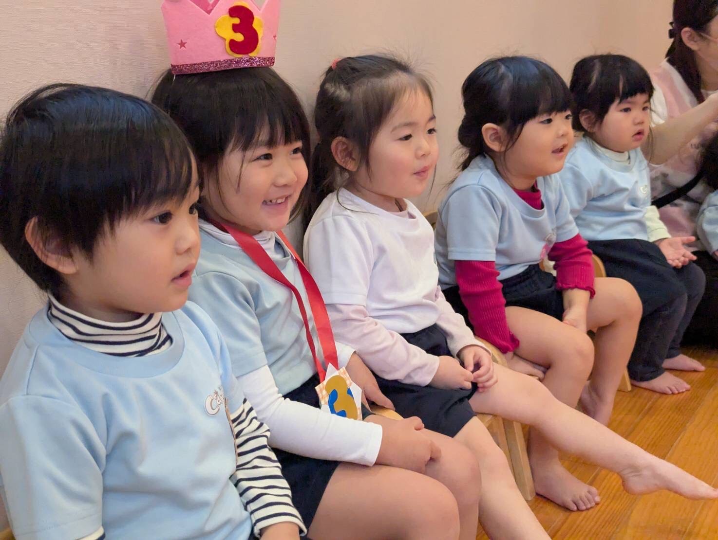 お誕生日の子とお母さんにインタビューをしたり、ハッピーバースデーをみんなで歌ったりしました😊🎶
