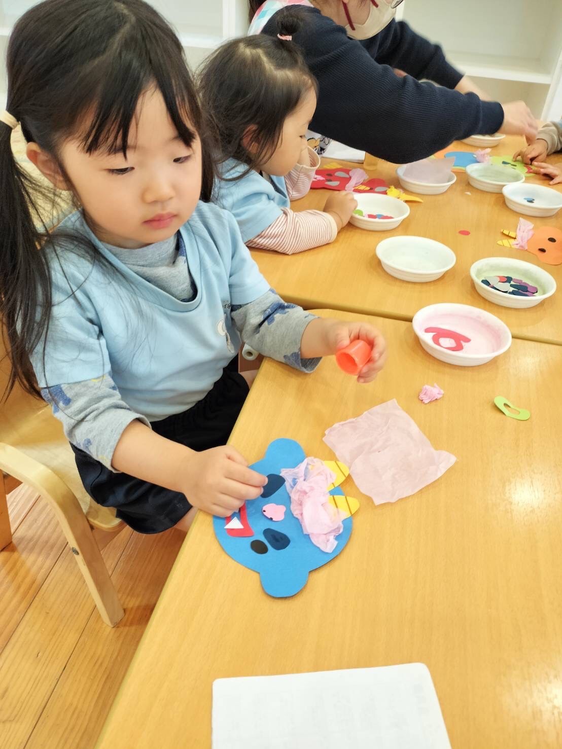 鬼のまゆげが曲がっていたり、つりあがっていたり、ツノやキバがたくさんあったり、みんなそれぞれクリエイティブなお面が出来上がりましたよ🌼そのあとは、食育タイム✨