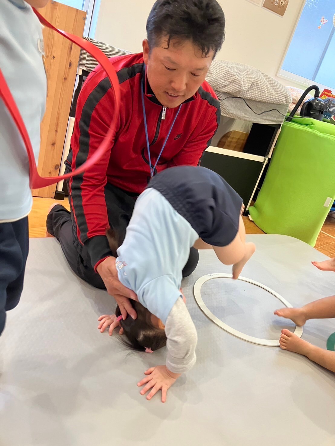 ぱんだ組さんは、最後はだあ先生に補助をしてもらい、前転にも挑戦!