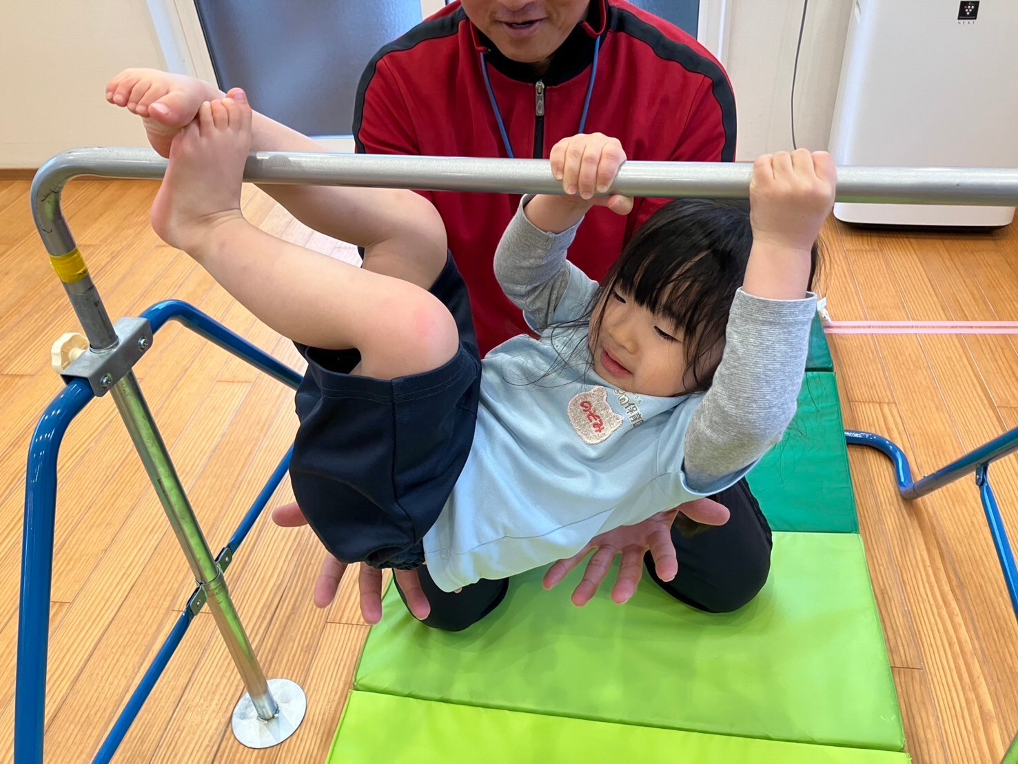 鉄棒では、腕の力をしっかりと使ってぶら下がっていた子ども達です✊