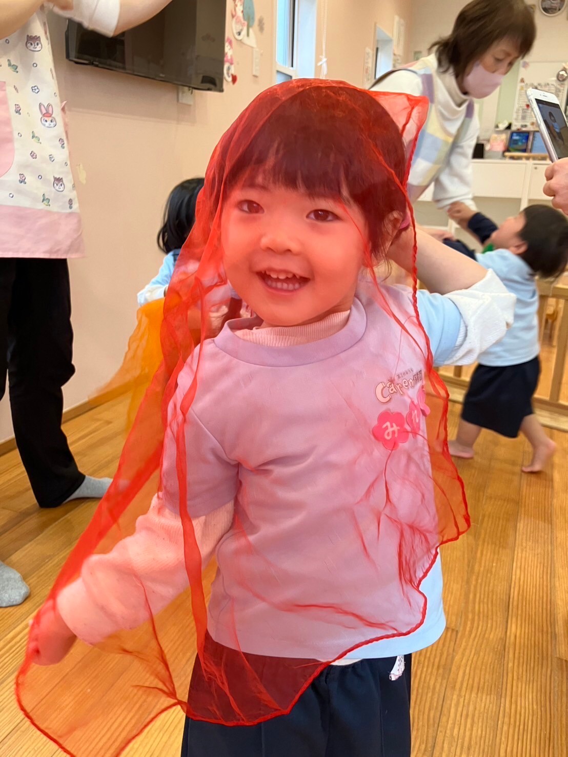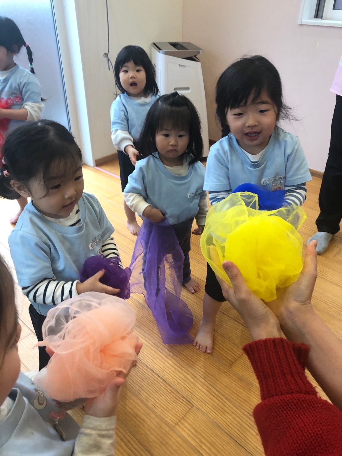 シフォンを使ってひらひらしながら「にじ」のうたも歌いましたよ。
