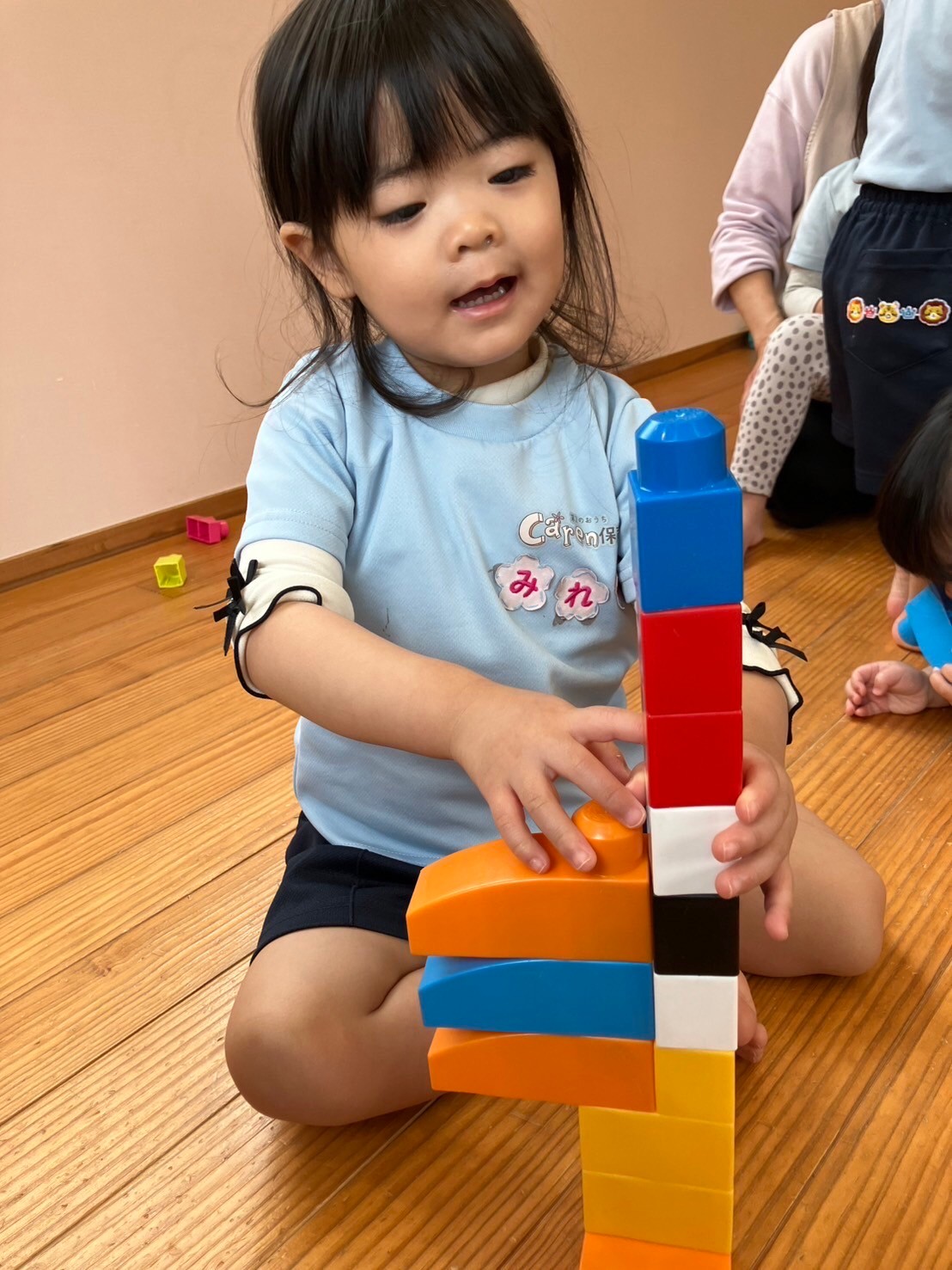 今日は朝からブロック遊びが大盛り上がり🎶みんな大声で友達を呼び合う遊ぶ姿も見られました。パトカーを作ったりケーキに見たり、電話をしたり📞それぞれ夢中になって遊びました😊