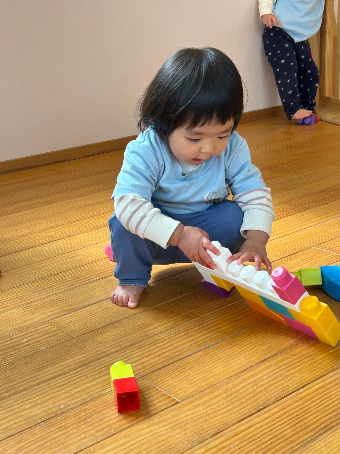 そのあとは園に戻って、お絵描き製作や、ブロック、人間トンネル遊びをしました✨🧱