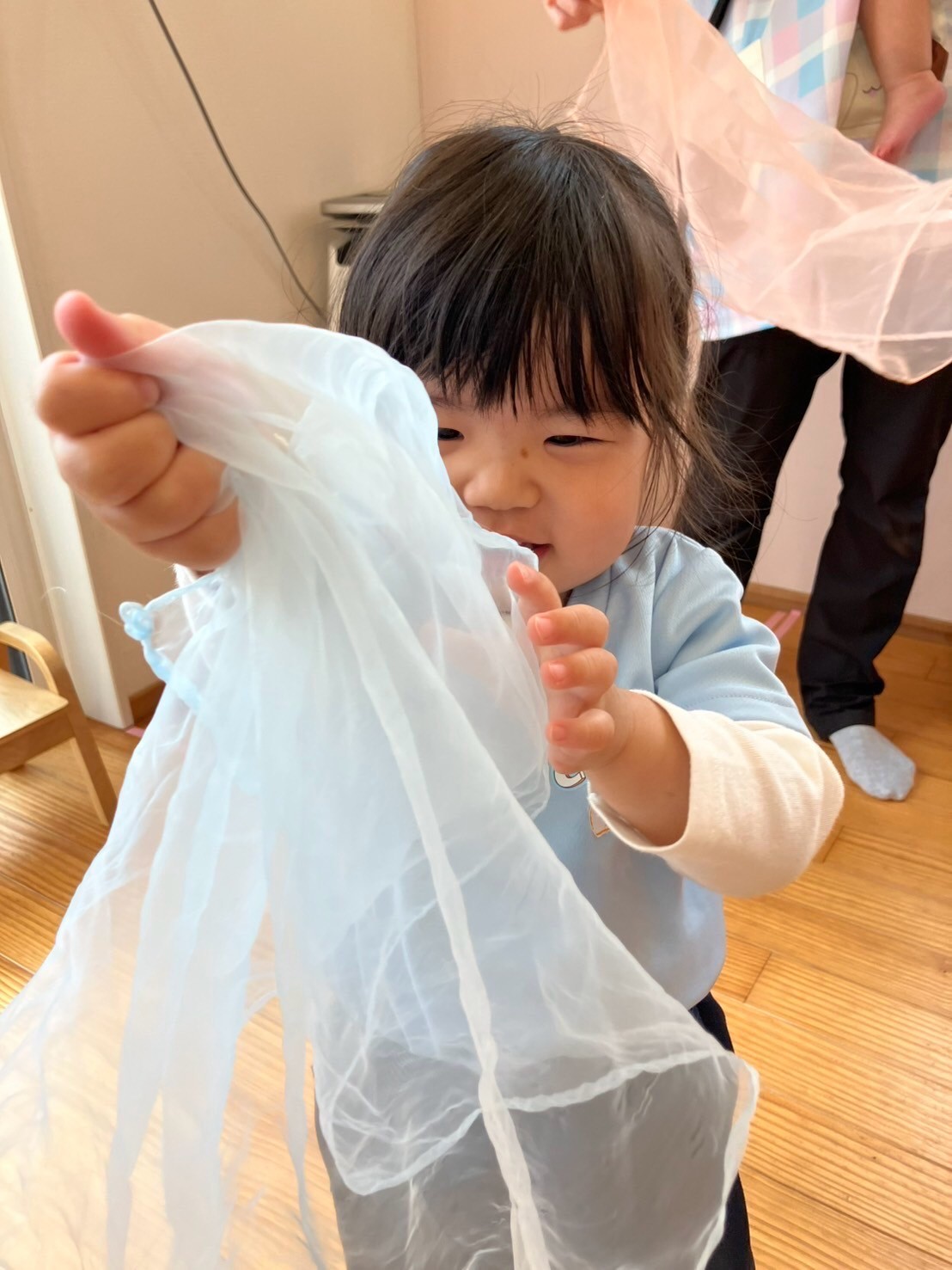 シフォンを使い、風を感じたりのびのびと感情を表現して「にじ🌈」を歌い終了しました。