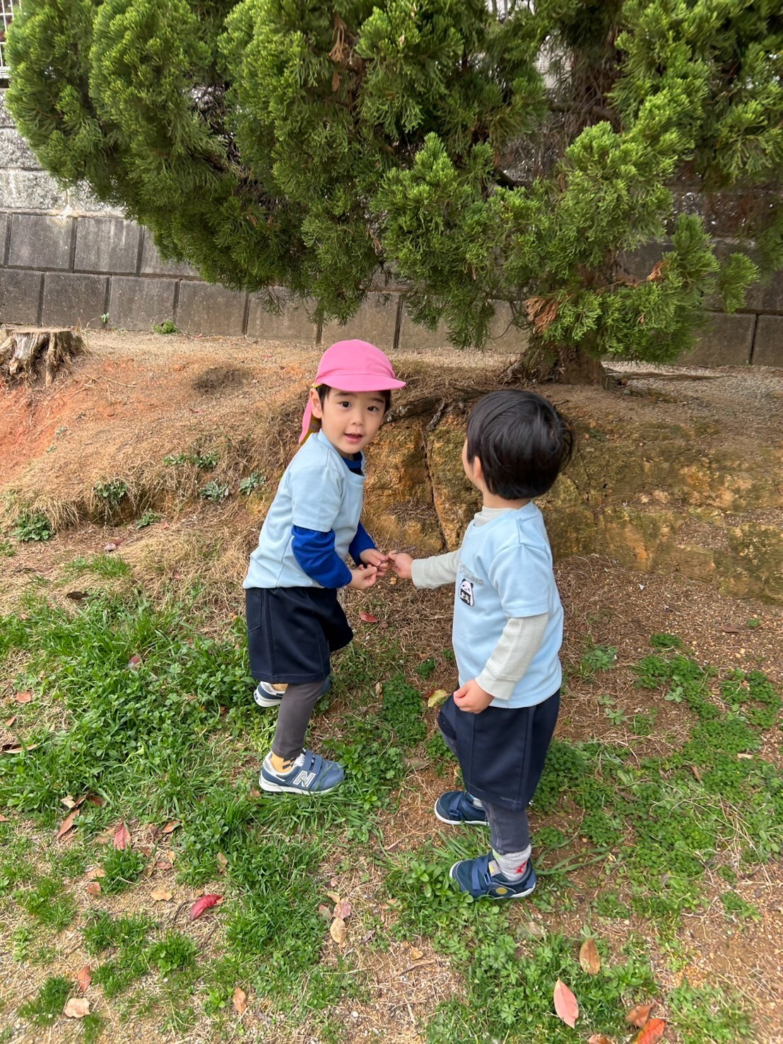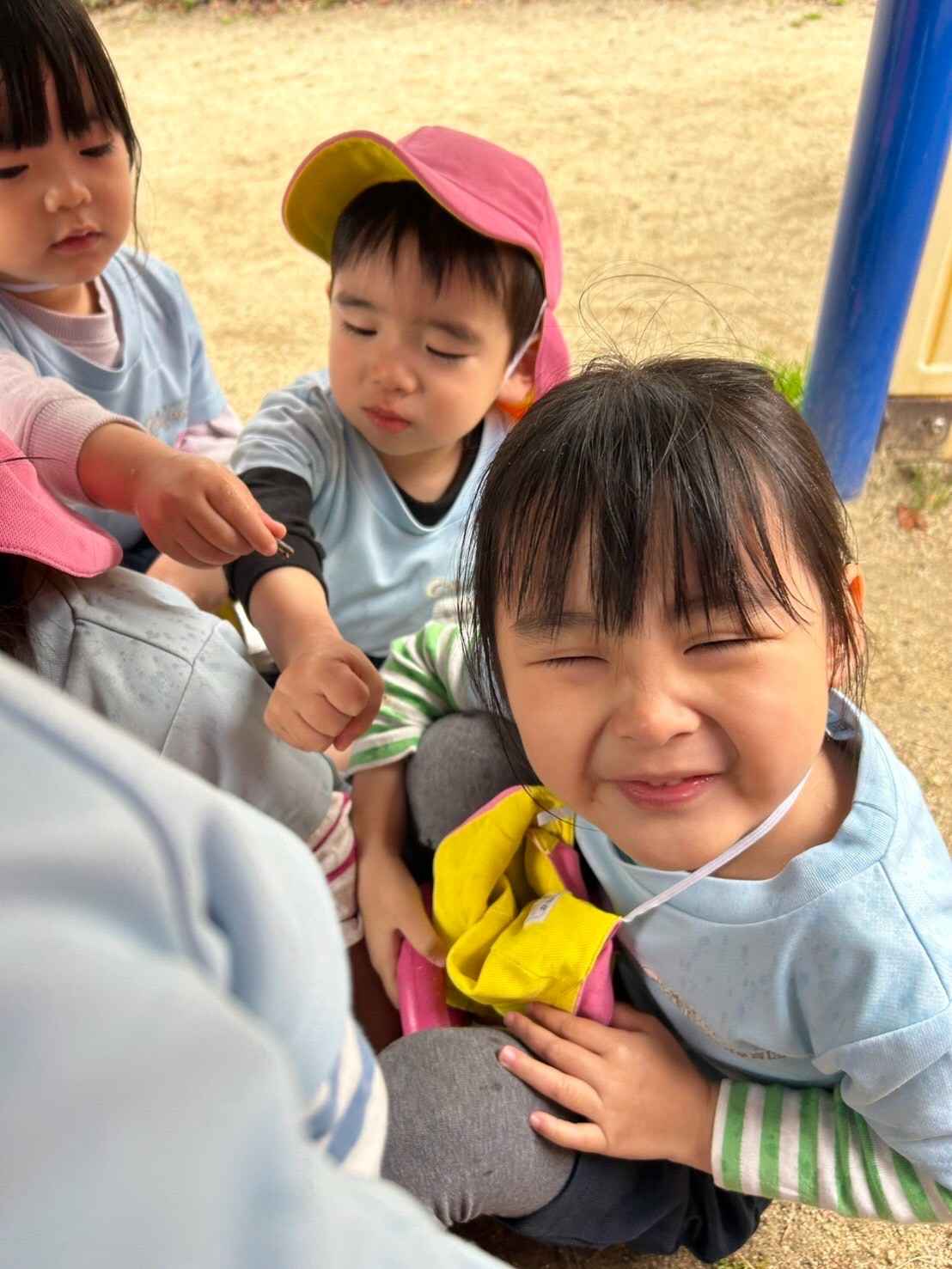 みんな、先生の集まるよ〜✨の合図で次はちがう公園の大きなすべり台の下で雨宿りをしました✨