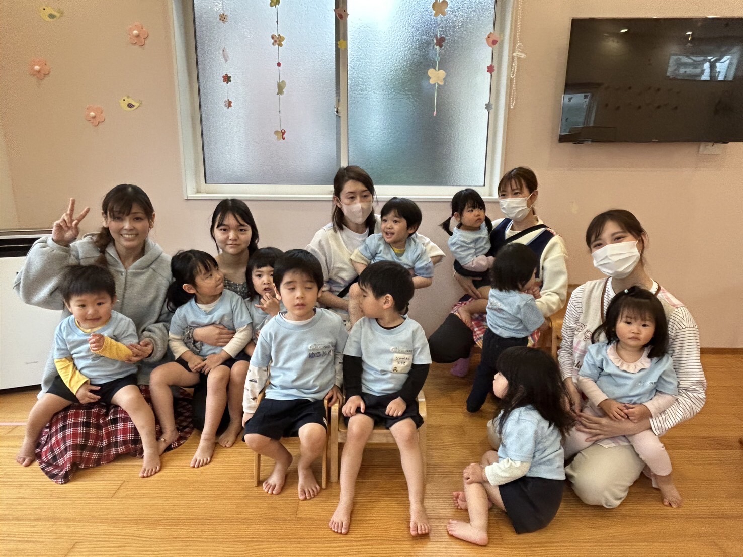 仕掛け絵本や絵合わせカード、あたまかたひさまぽんのリズム遊びをした後はいおりちゃんとまゆみ先生がサックスで「糸」をひいてくれました✨