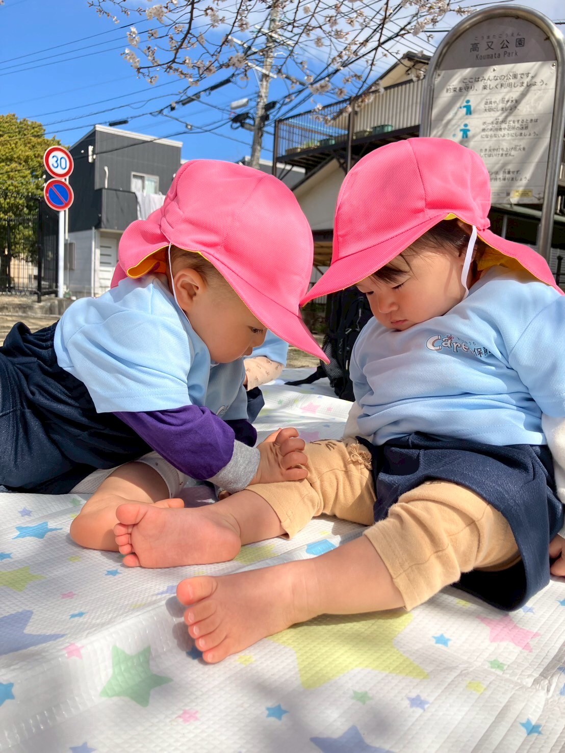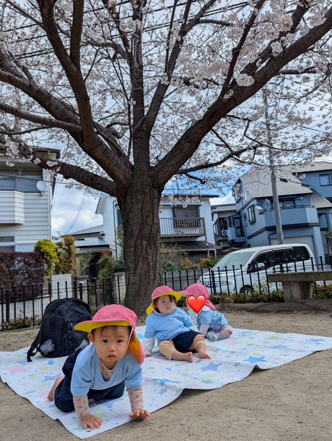公園は桜が咲いて、あたたかい日差しの中で日向ぼっこをしたり滑り台を滑ったりして思いもい思いに遊びました🛝🌸