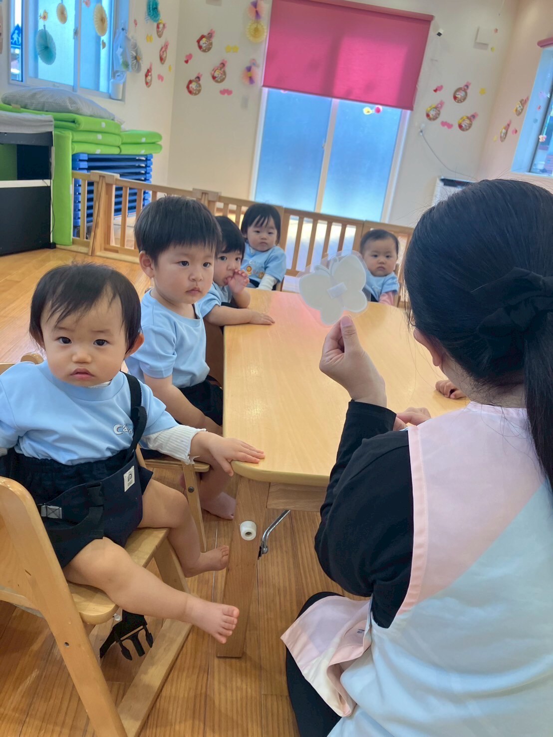 今日は風船やちょうちょのパネルシアター、手遊びうたのあと元気に朝のごあいさつ✨💓
