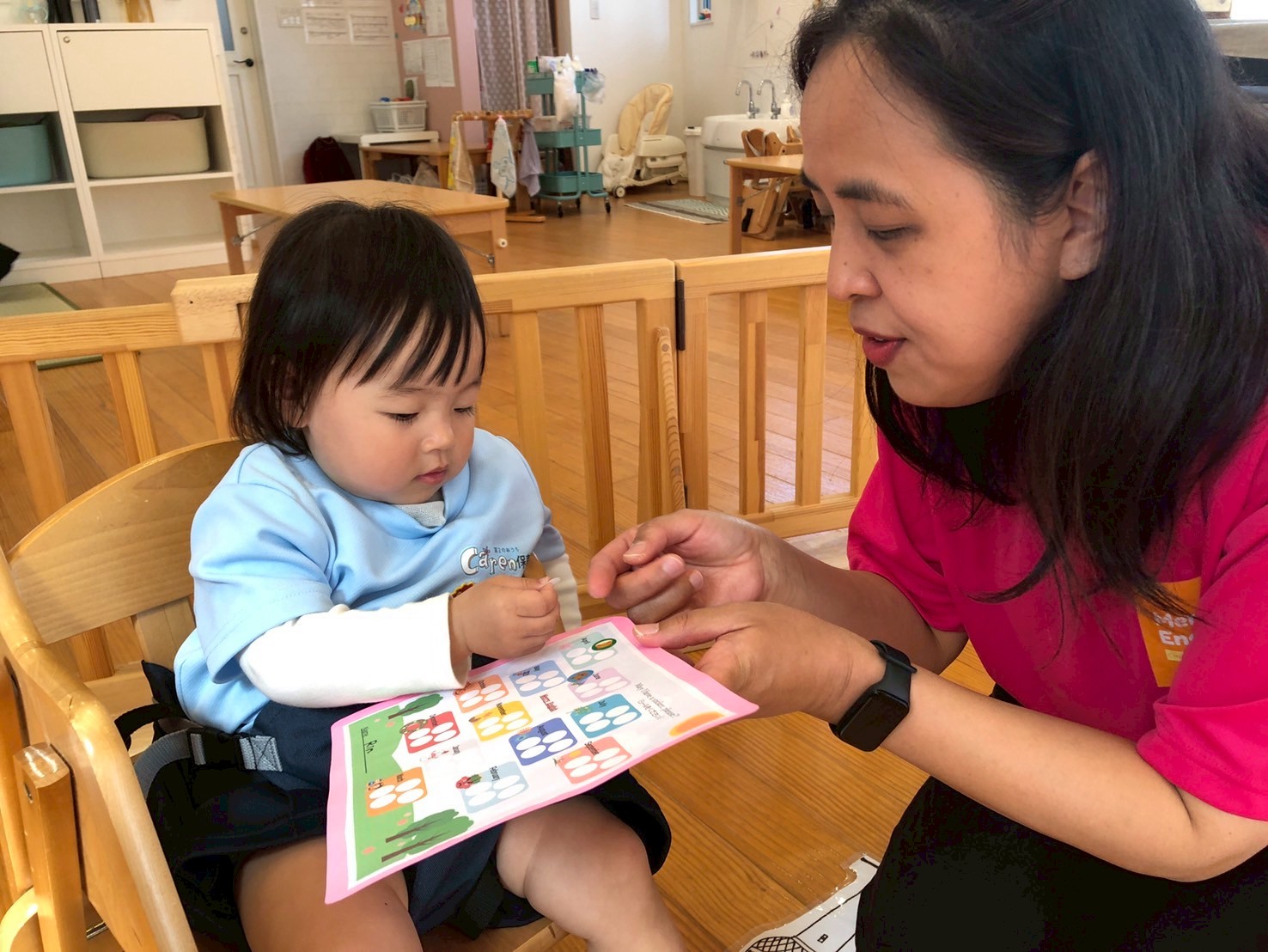 英語レッスンでチャリナ先生が来てくださると、園児さんは大興奮✨