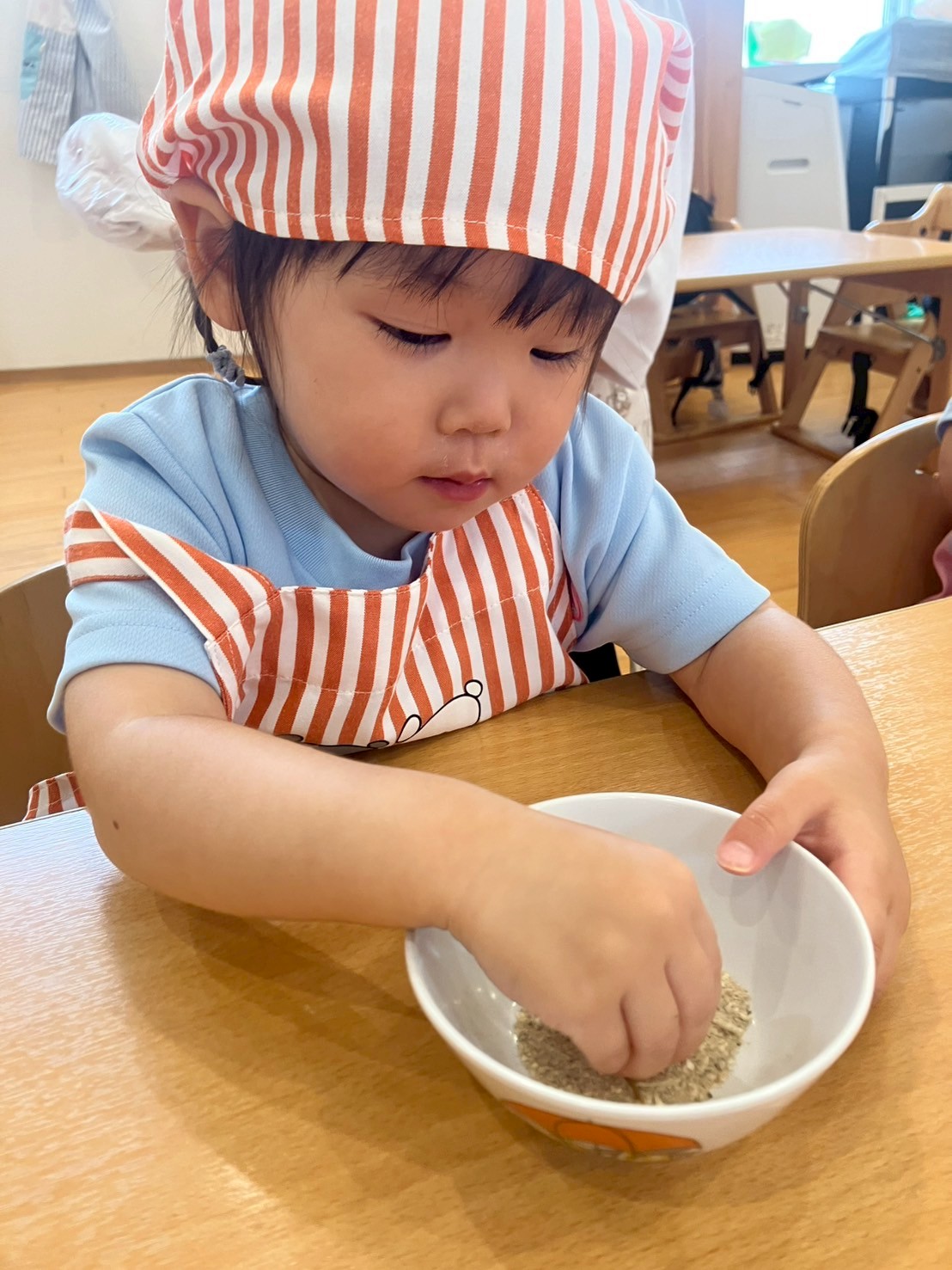 出汁パックが出来上がると、みんなでみせあいっこしていました😆Caren保育園名島