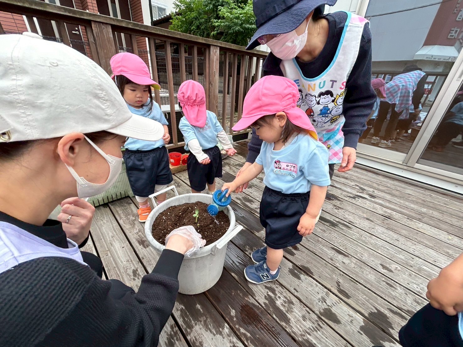 苗を植えて「大きくなぁれ」水やりです🌱🫧