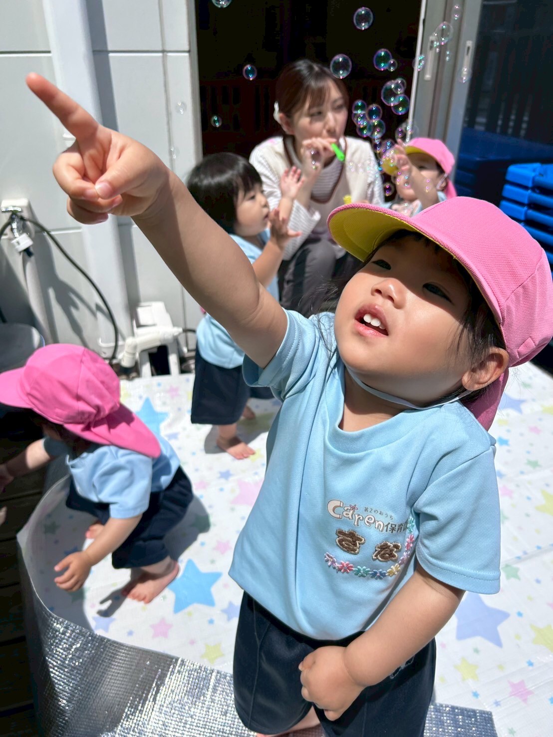 りす組さんはテラスでシャボン玉や水やりをし、制作もして盛りだくさんの一日でした🫧