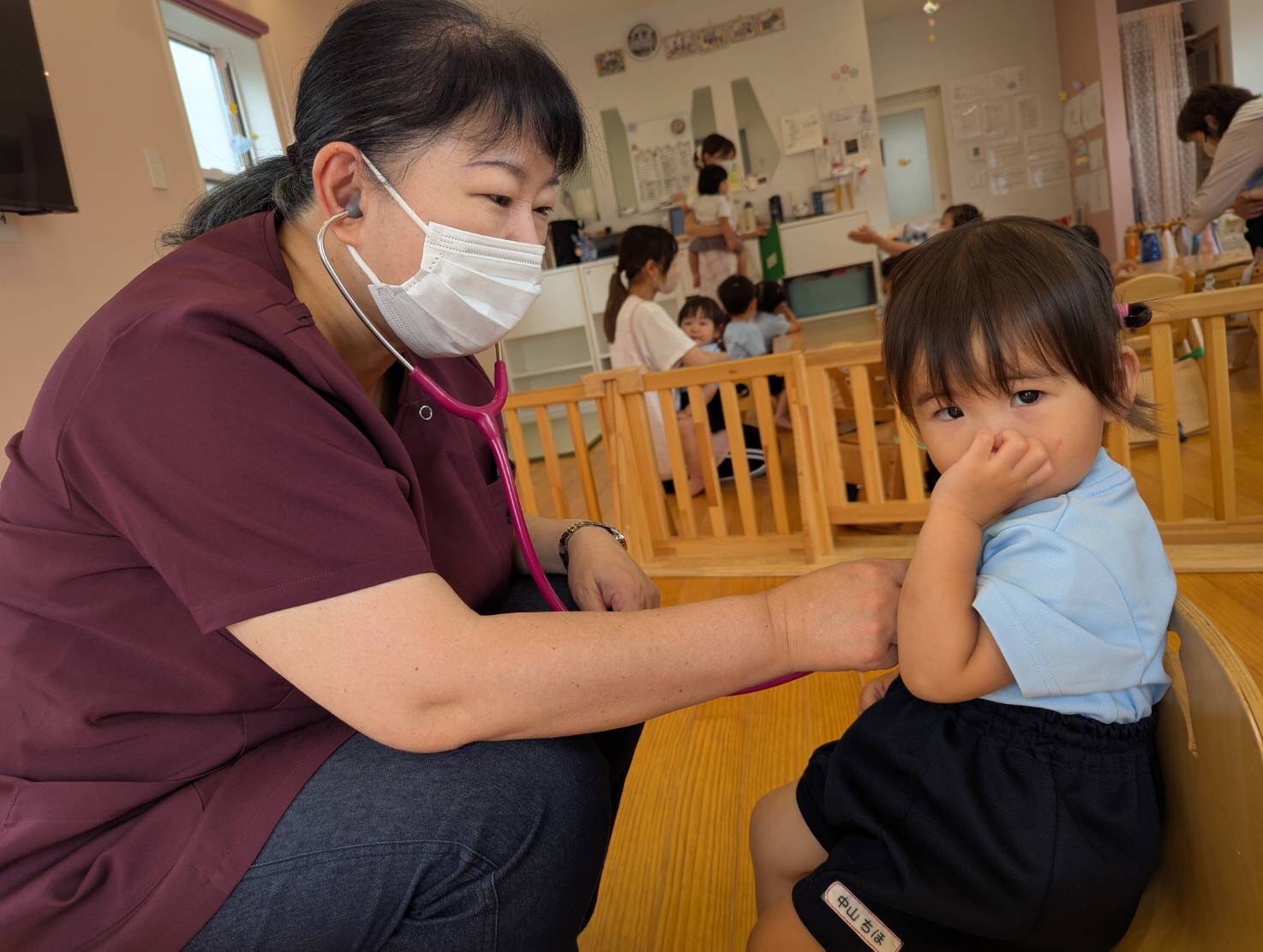くるっと回ることが出来ると、笑顔が見られていましたよ🤗そして今日は伊東先生に来園していただき、内科検診がありました。