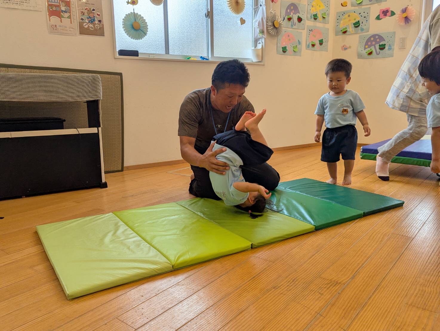 ぱんだ組さんは、だあ先生の補助を受けて前転にも挑戦しました!
