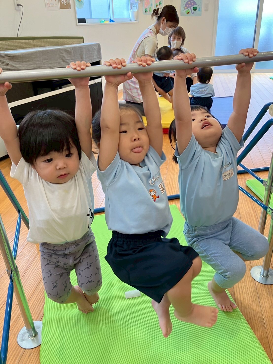 鉄棒では、腕の力をしっかり使ってぶら下がることが出来ました👏