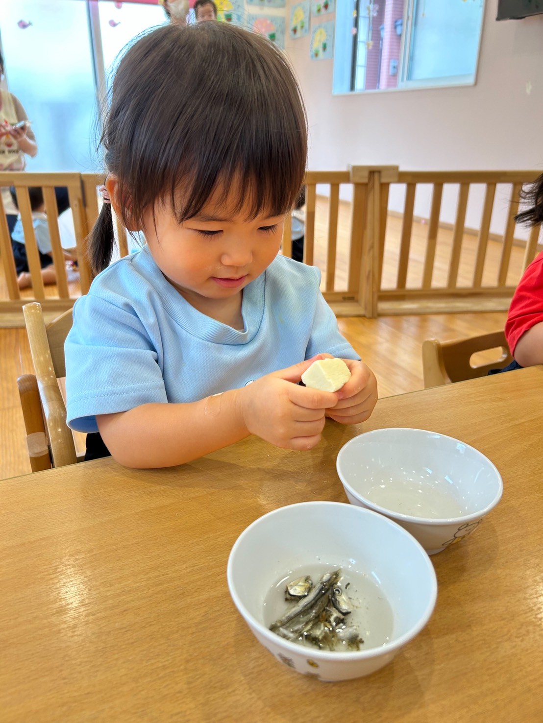 さわったら、やわらかくなった乾物に、園児さんたちは瞳がキラキラ✨