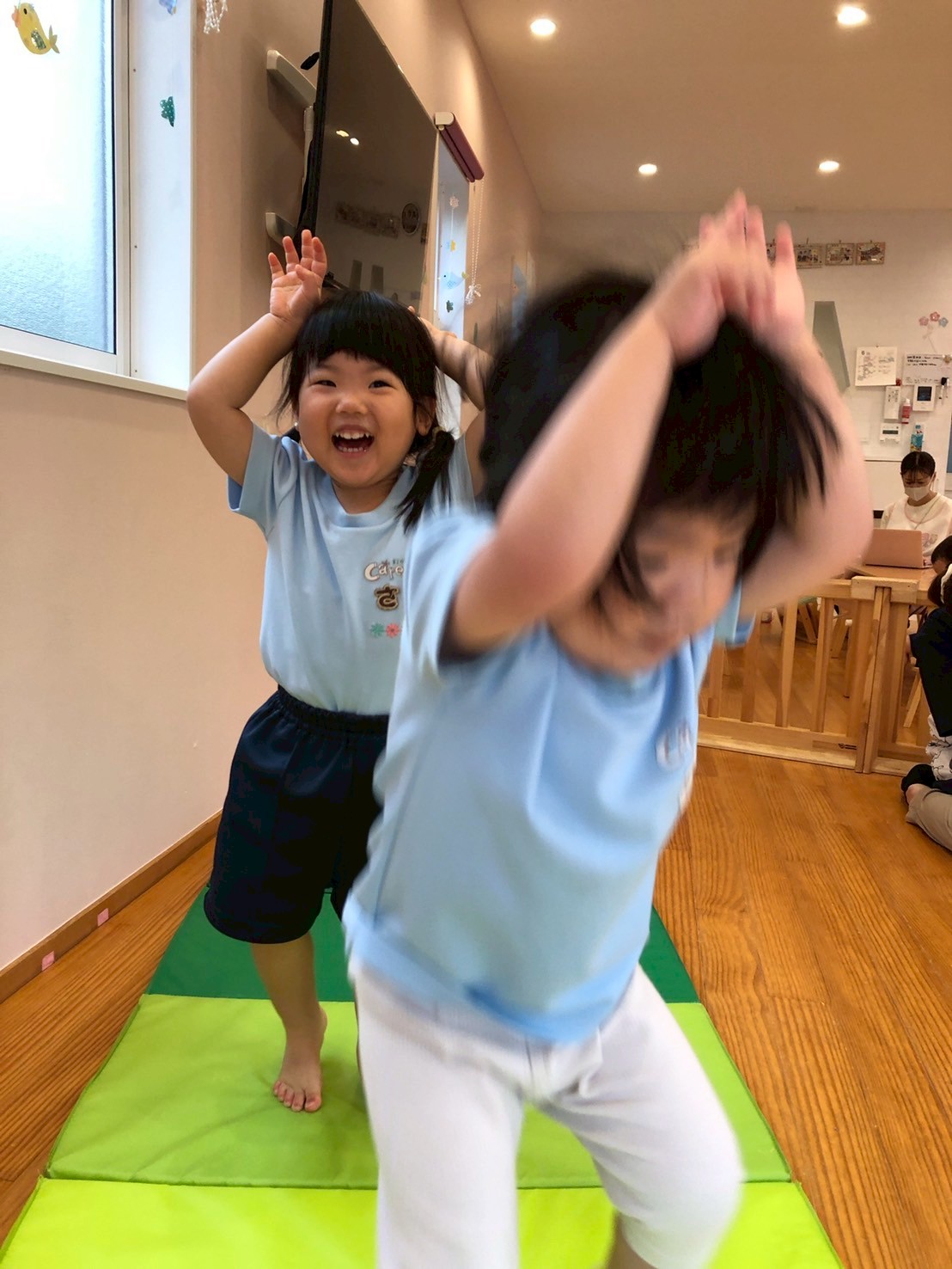「はいはい♡」と赤ちゃんに変身してトンネルをくぐったり、マットの上でジャンプをしたり、風船を思いっきり叩いたり、たくさん身体を動かしました😆❣️りす組さんは、音の鳴るおもちゃで夢中になって遊びましたね💖